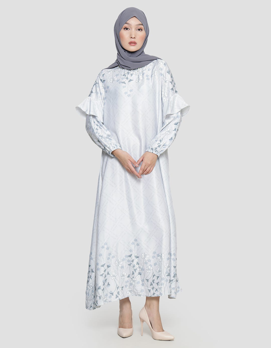Annisa Gamis Wanita Print Flower Satin Max Ruffle