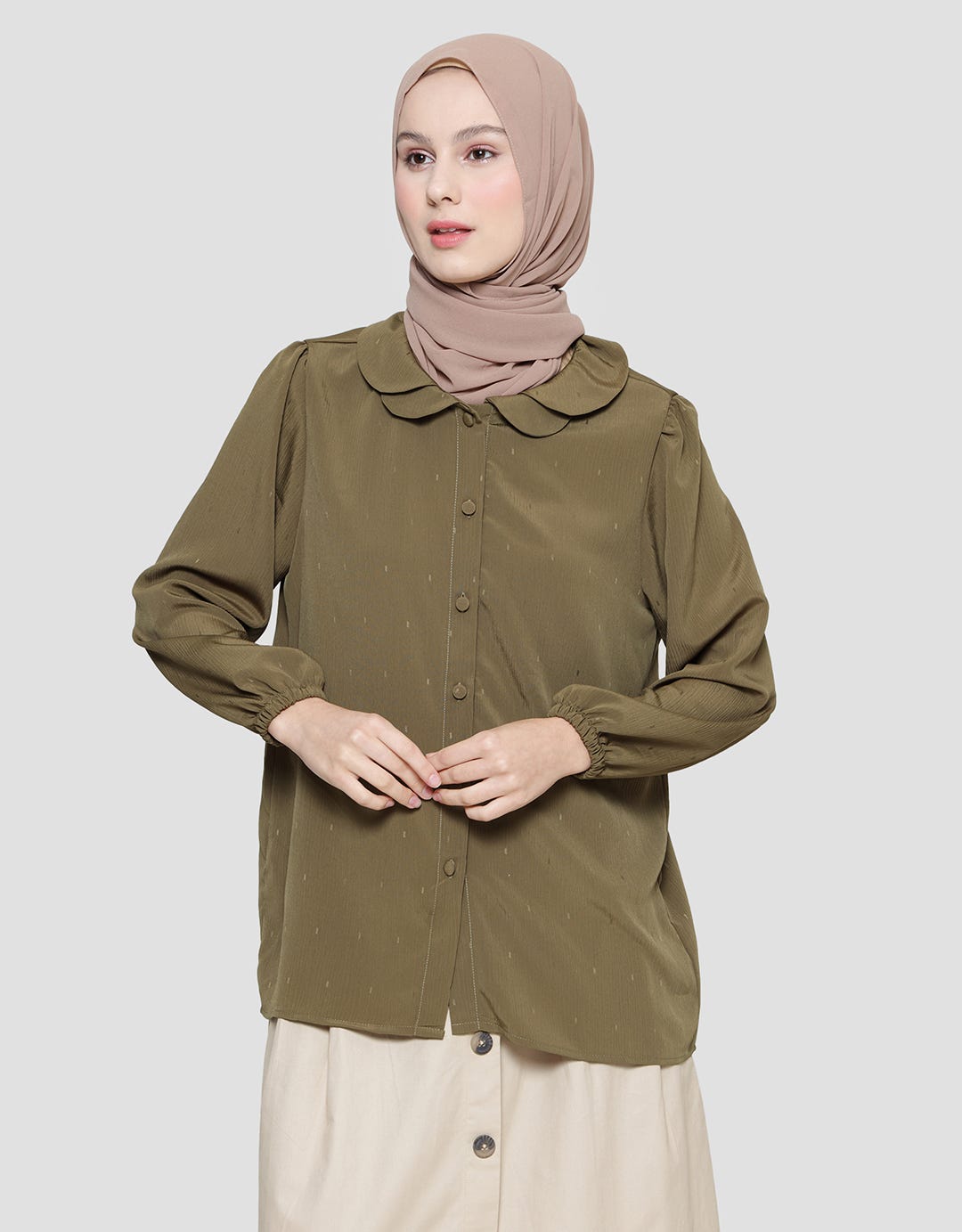 Annisa Kemeja Lengan Panjang Petal Collar Poly Jacquard Wanita