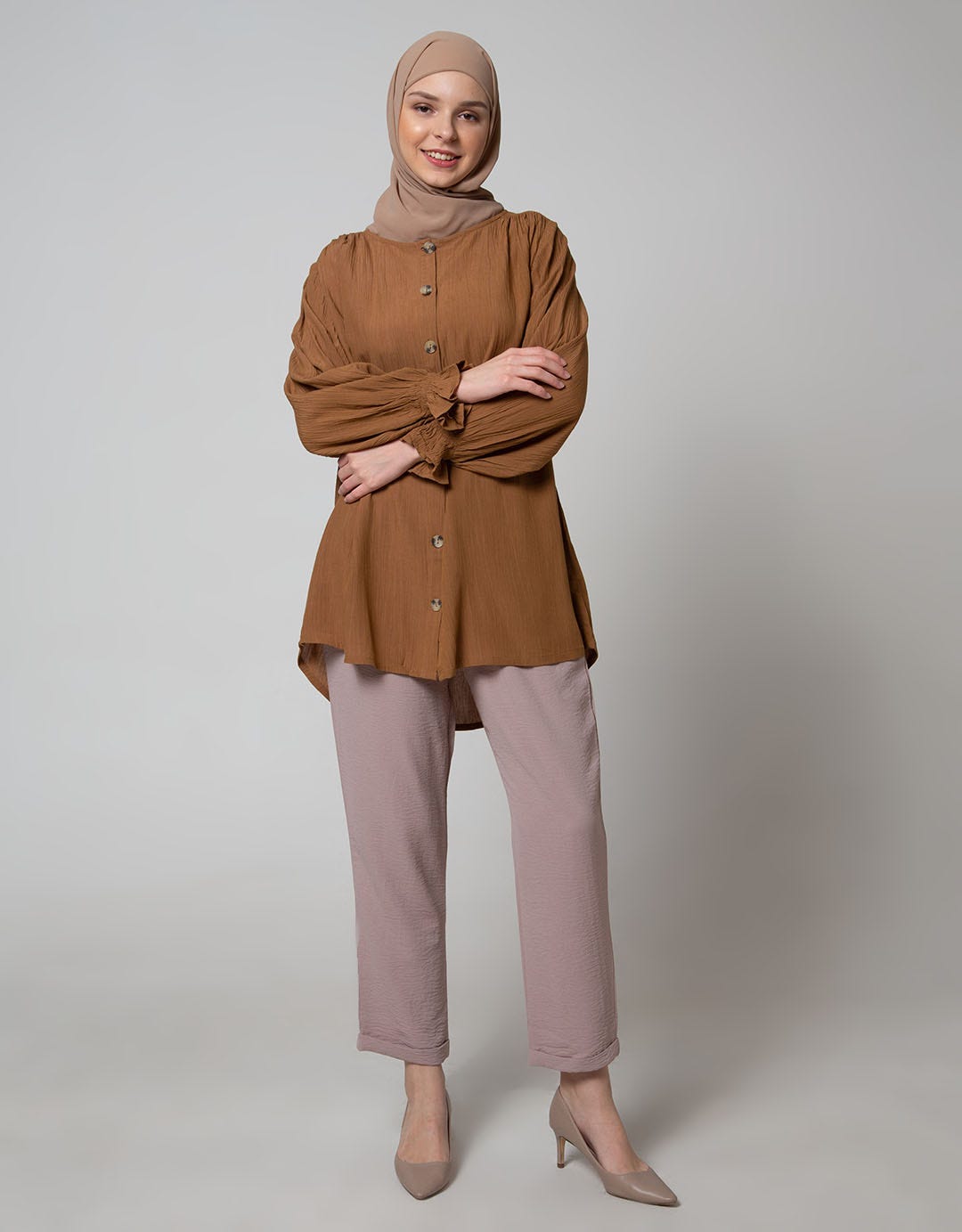 Annisa Long Sleeve Blouse Button Through Rayon Crickle
