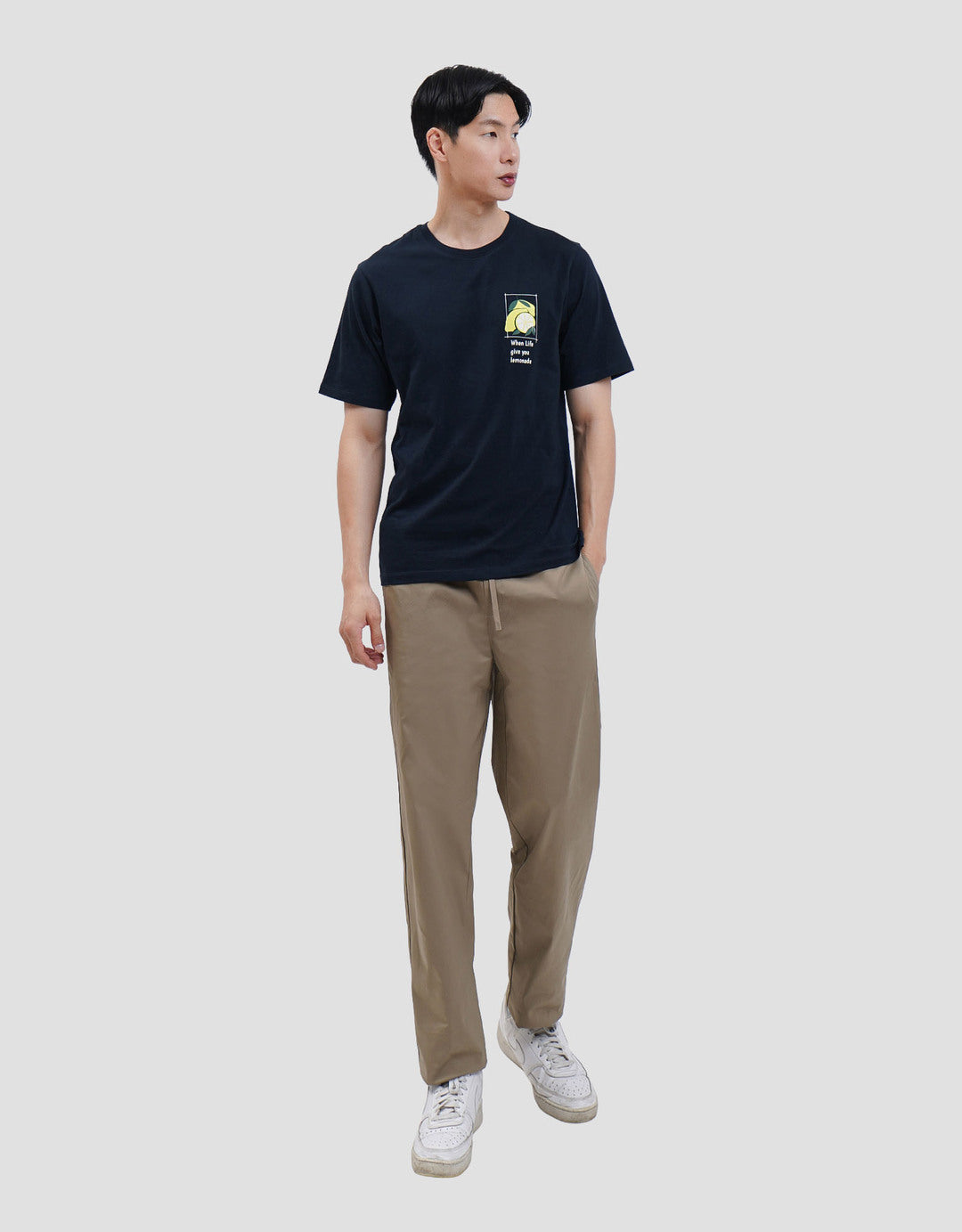 Wording print (When Life Give You Lemonade) dengan tampilan grafis buah lemon yang eye-catching. Hadirkan gaya kasual dengan kaos lengan pendek yang simpel. Aktivitas lebih nyaman dengan balutan material katun yang ringan dan adem saat dipakai.