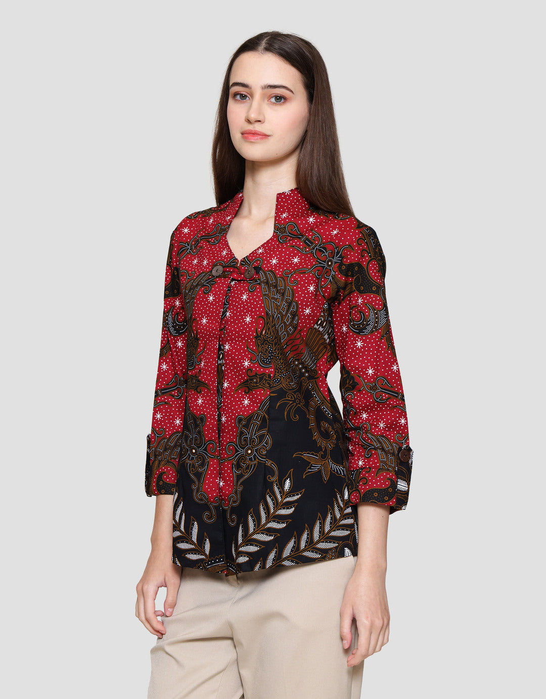 Blouse batik wanita dengan design simple casual, cocok untuk digunakan pada moment keseharian saat pergi ke kantor atau menghadiri kegiatan spesial lainnya. Material yang berkualitas akan nyaman saat digunakan sepanjang hari.