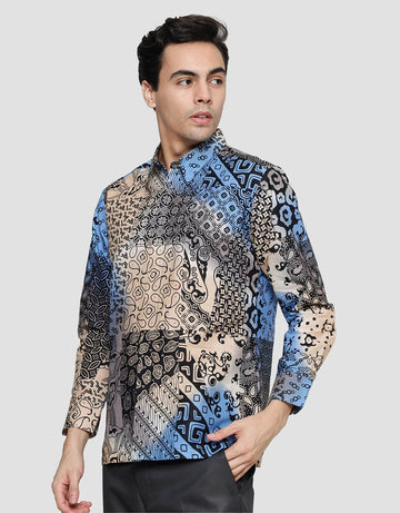Arjuna Weda Body Fit Batik Tambal Pelangi Kemeja Batik Pria