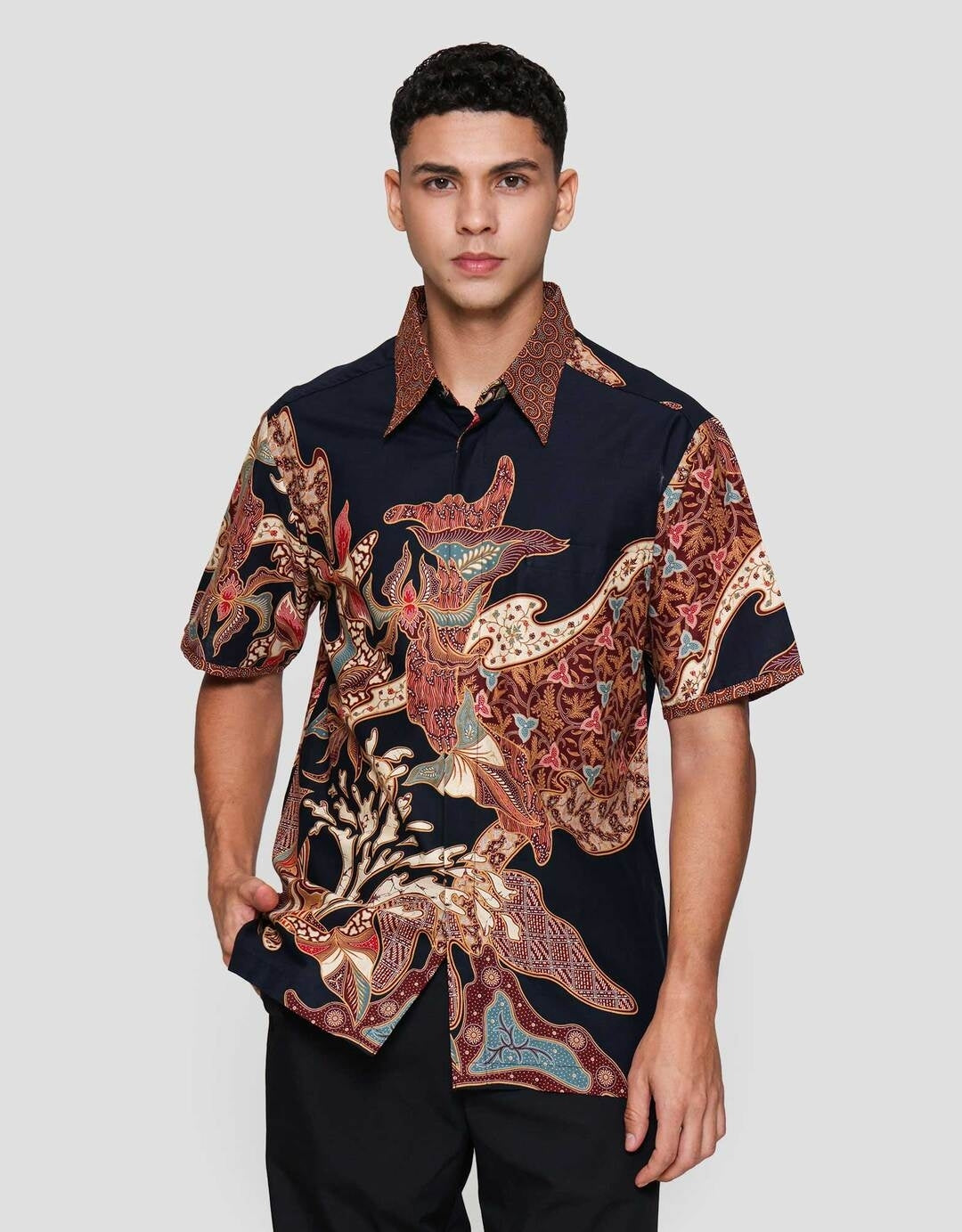 Arjuna Weda Hem Body Fit Daun Kemeja Batik Pria