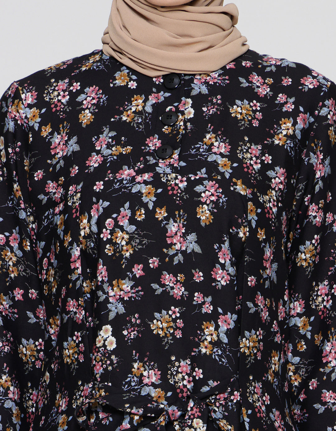 - Tampilan motif full print bunga