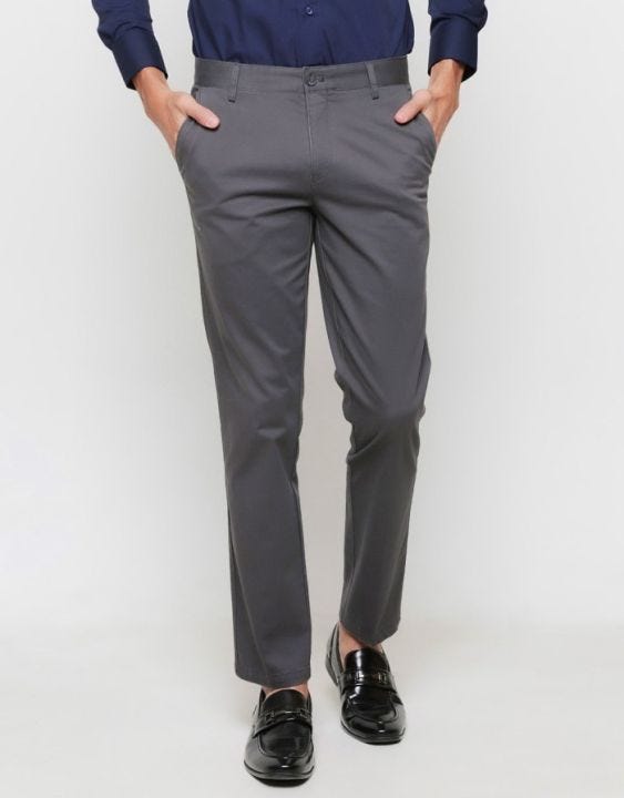 Celana panjang formal dengan model yang simple dan elegan, cocok untuk digunakan saat pergi ke kantor atau moment formal Anda lainnya.