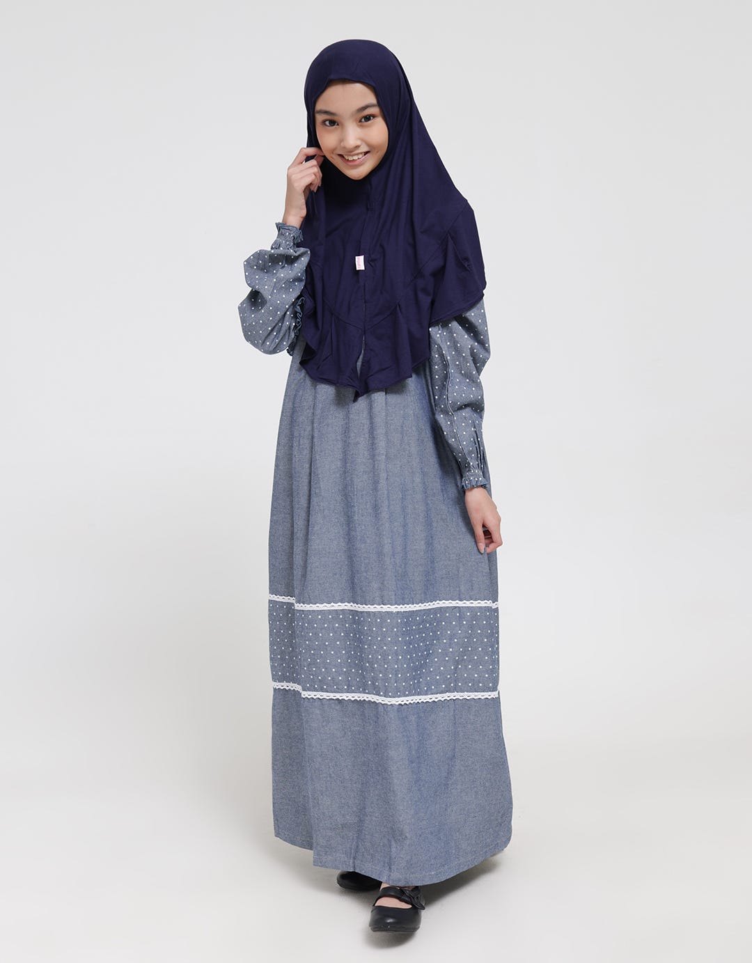 Dress muslim anak dengan model simple casual, cocok untuk digunakan anak-anak pada moment lebaran maupun keseharian. Bahan yang berkualitas akan nyaman saat digunakan sepanjang hari.