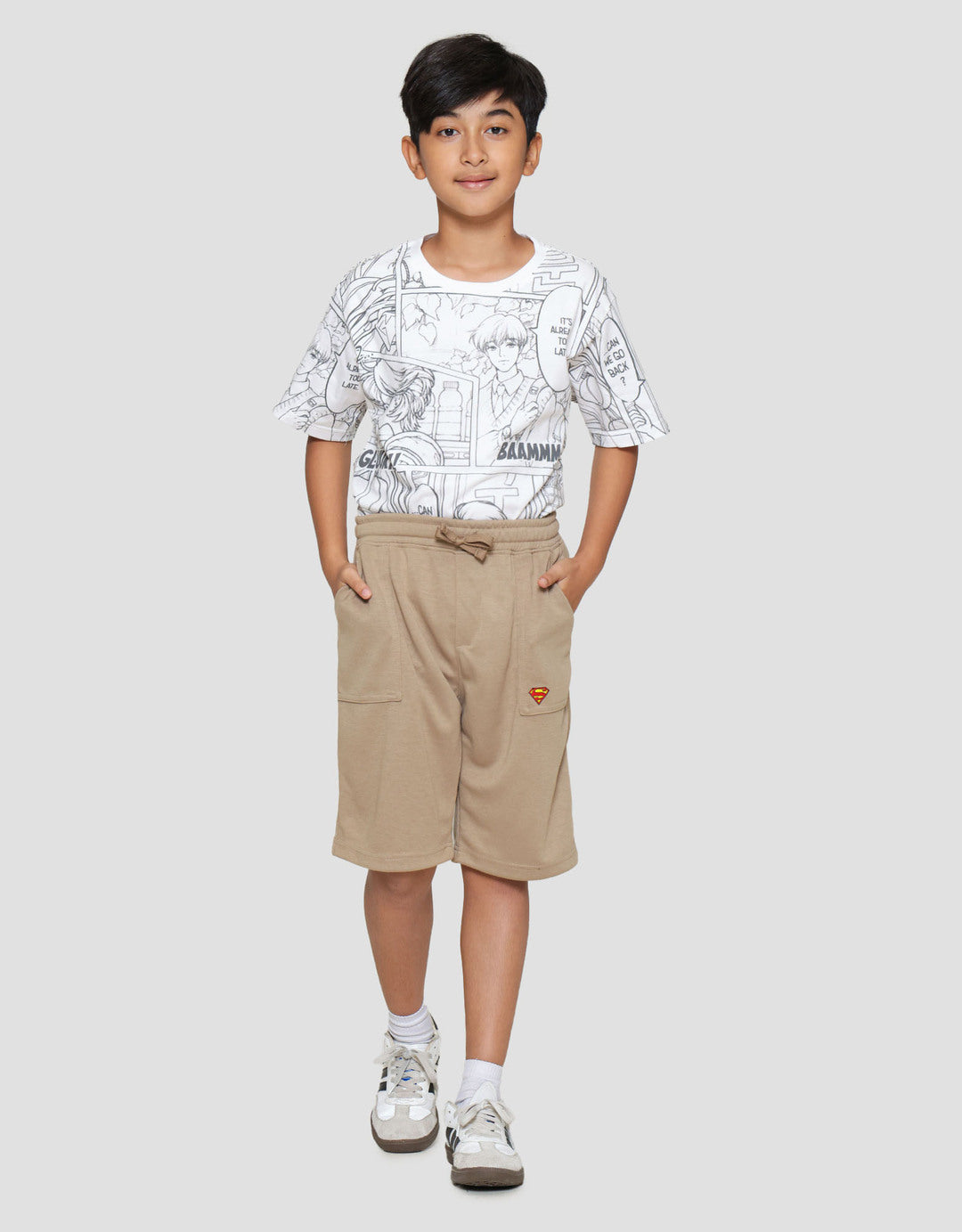 Character Knit Superman Logo Bordir Celana Pendek Anak Laki-laki
