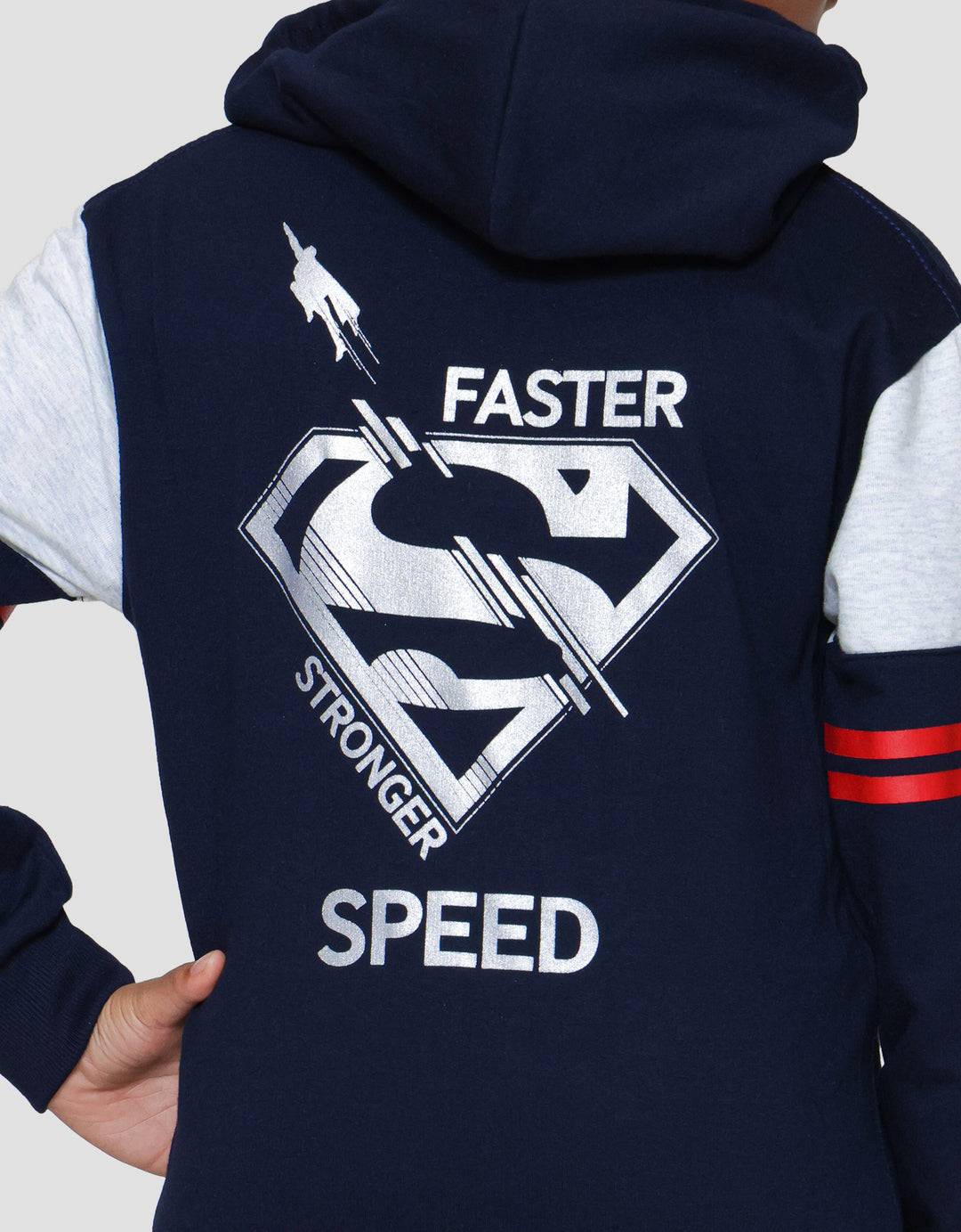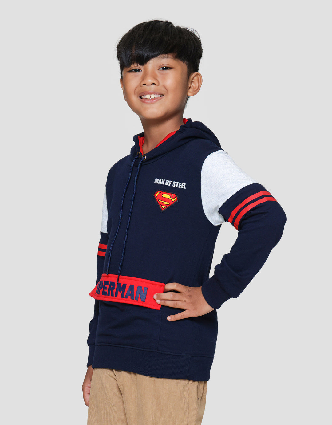 Character Superman Hood Tulisan Sup Print Sweater Anak Laki-laki