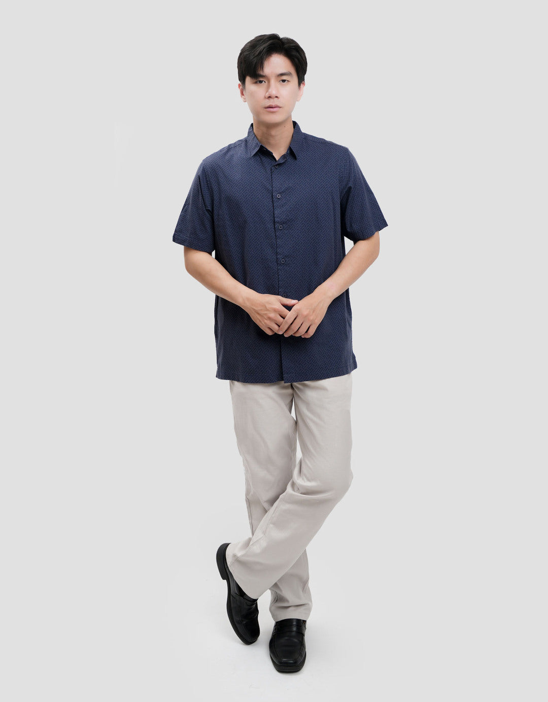 Kemeja pria yang cocok digunakan sebagai outfit keseharian saat pergi ke kantor. Model yang simple dan timeless, mudah dipadankan dengan bawahan kesukaan Anda.