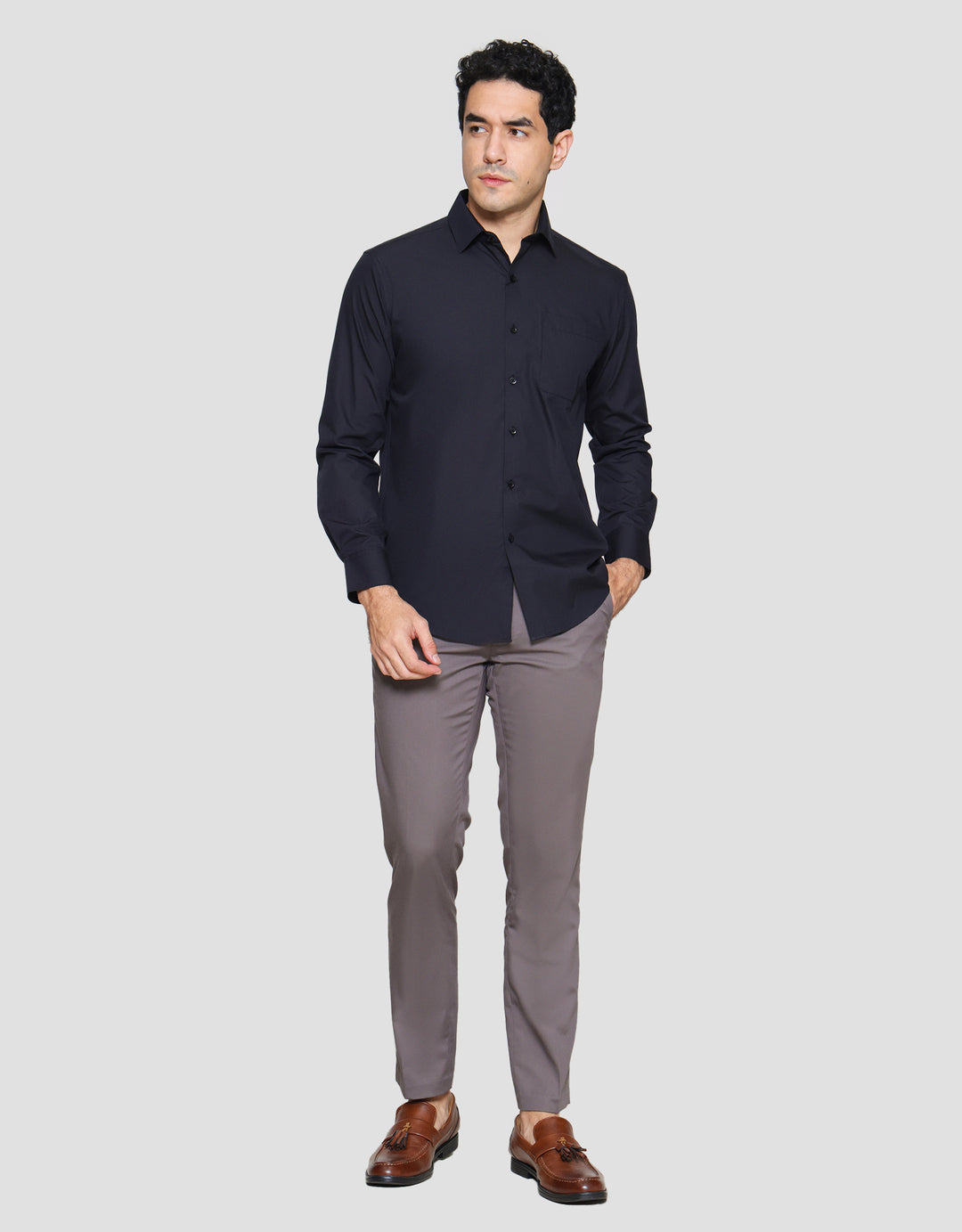 Cole Basic Solid Regular Kemeja Lengan Panjang Pria