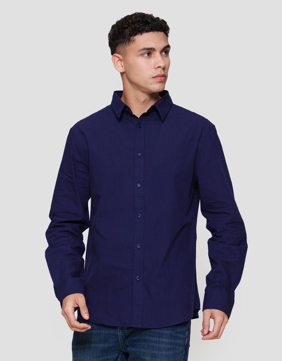 Kemeja pria yang cocok digunakan sebagai outfit keseharian saat pergi ke kantor. Model yang simple dan timeless, mudah dipadankan dengan bawahan kesukaan Anda.