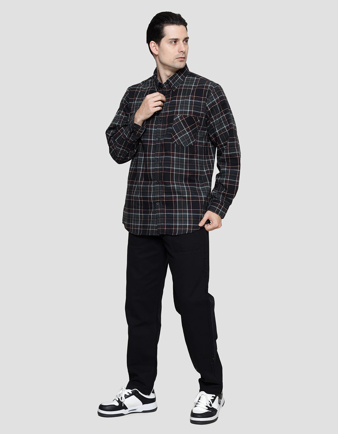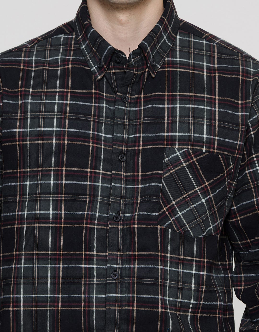 Cole Check Corduroy Kemeja Lengan Panjang Pria