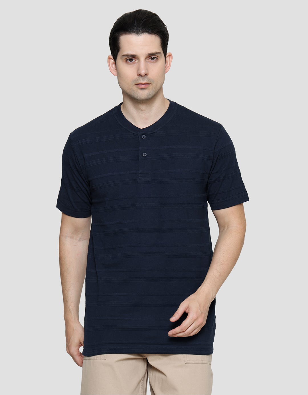 Cole Fancy Solid Kaos Henley Lengan Pendek Pria