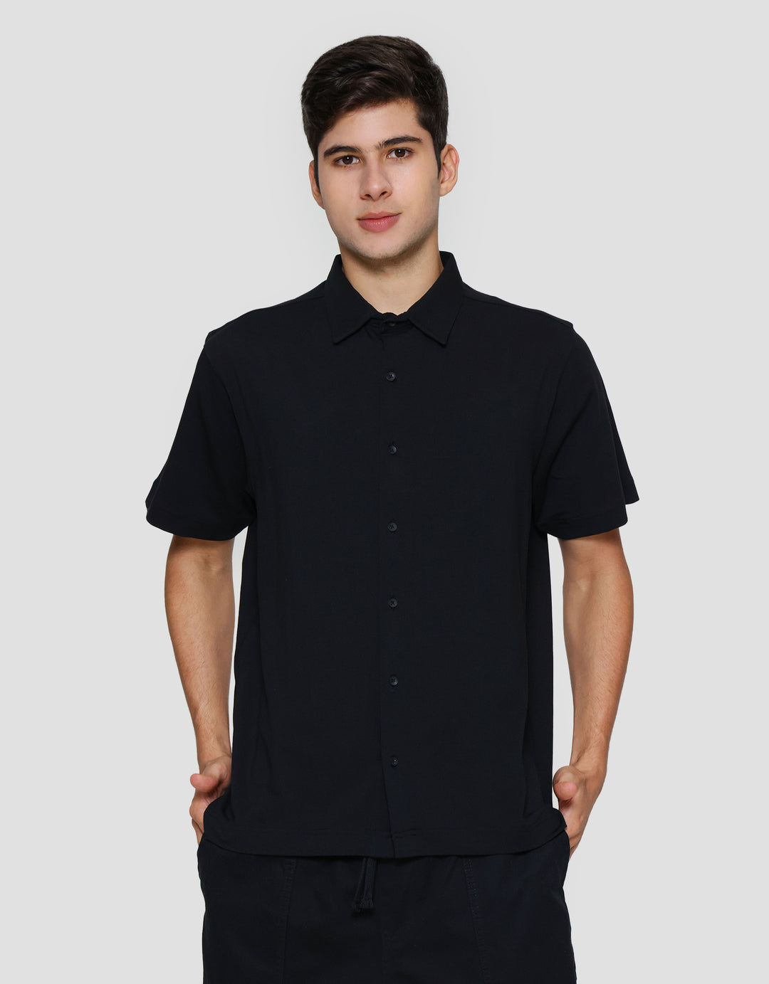 Cole Knitt Solid Ascot Kemeja Lengan Pendek Pria