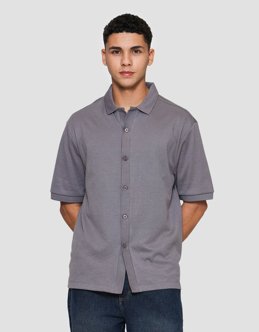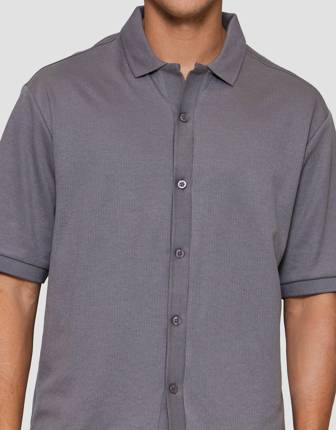 Cole Knitt Texture Camp Colar Kemeja Pria