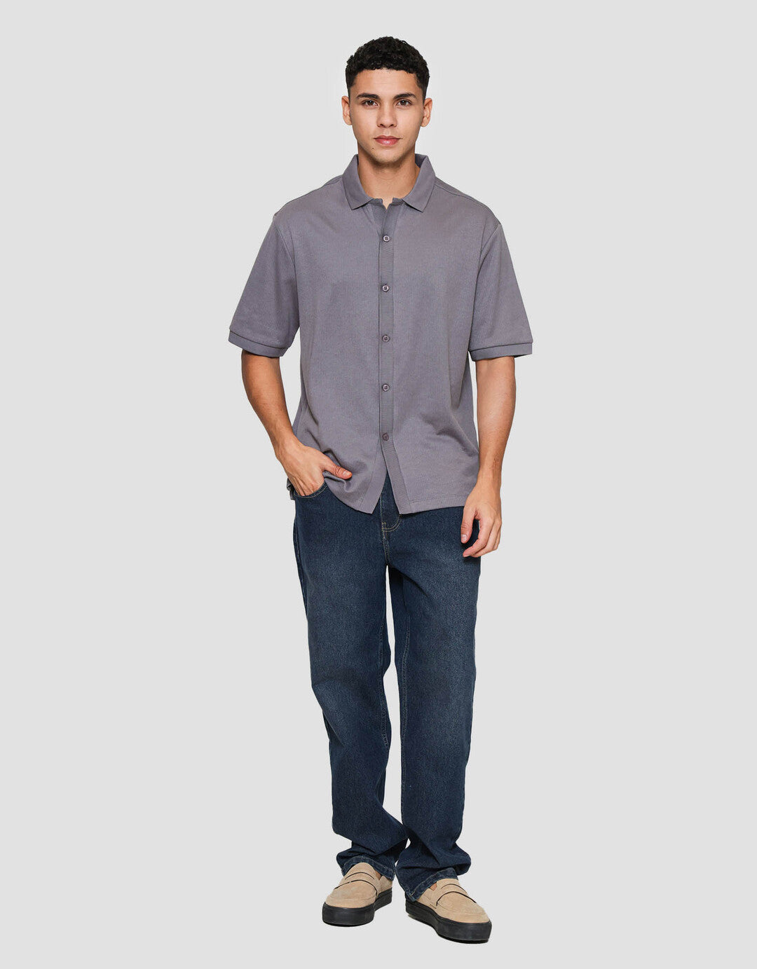 Kemeja pria yang cocok digunakan sebagai outfit keseharian saat pergi ke kantor. Model yang simple dan timeless, mudah dipadankan dengan bawahan kesukaan Anda.