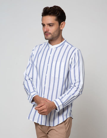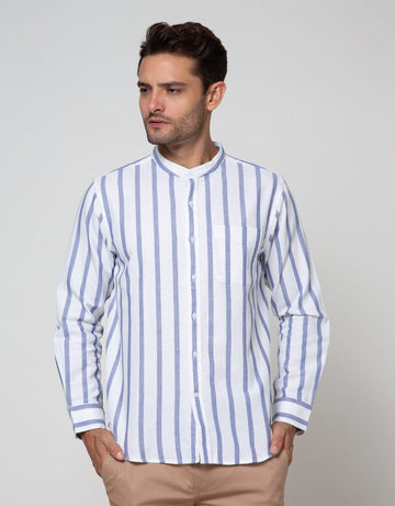 Cole Long Sleeve Shirt Grandad Stripe 1 Pocket