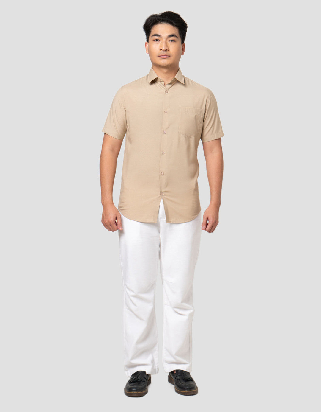 Kemeja pria yang cocok digunakan sebagai outfit keseharian saat pergi ke kantor. Model yang simple dan timeless, mudah dipadankan dengan bawahan kesukaan Anda.
