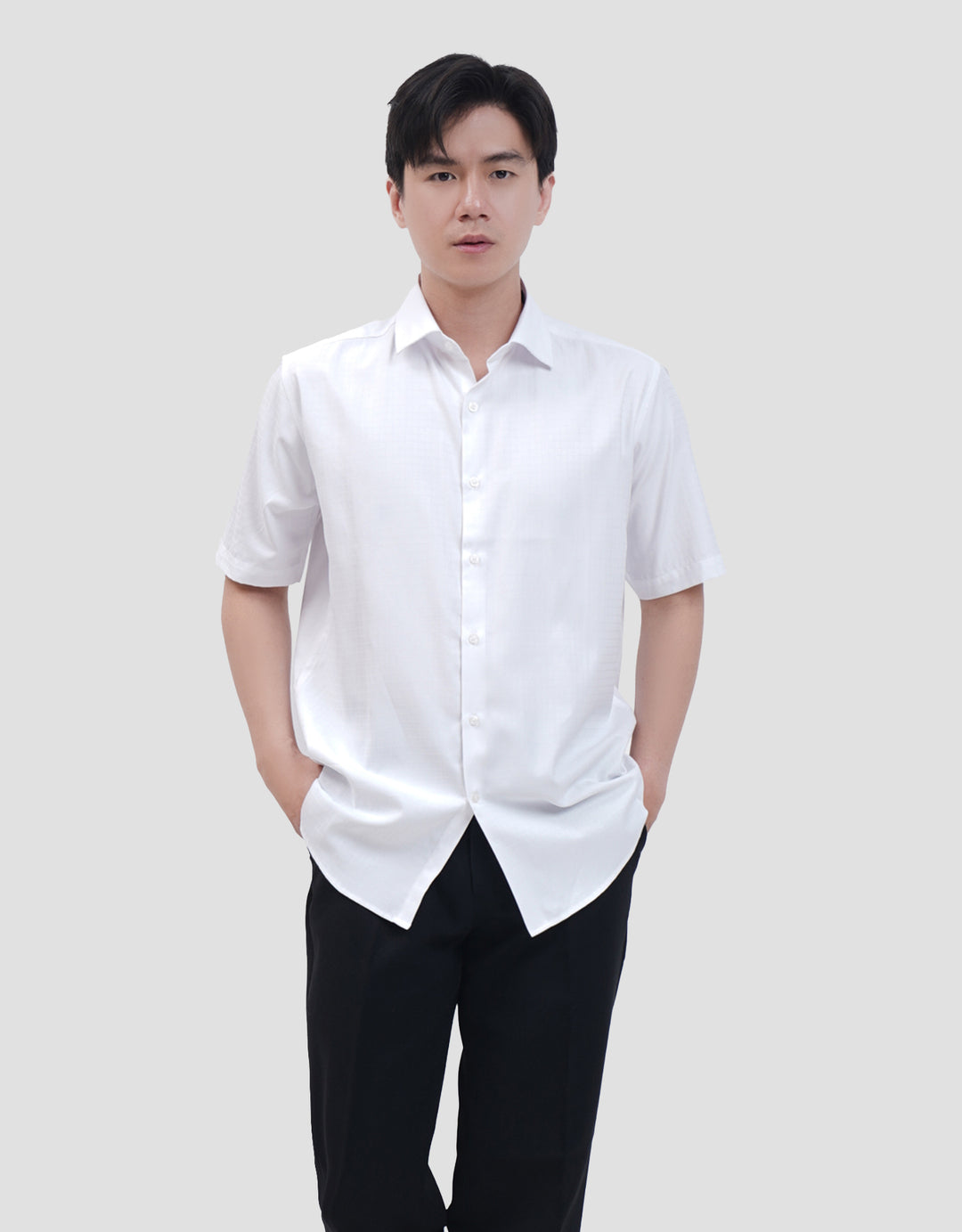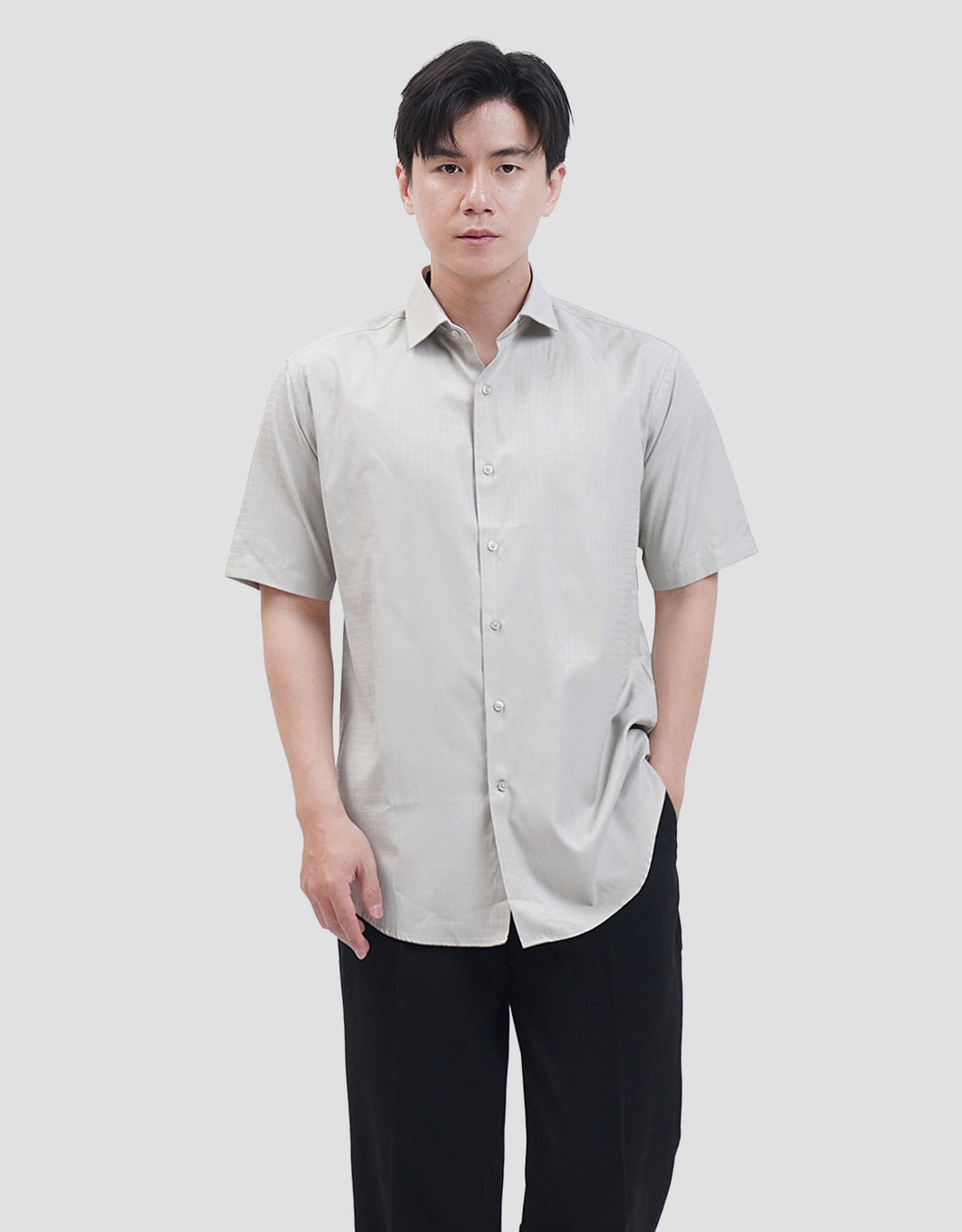 Kemeja pria yang cocok digunakan sebagai outfit keseharian saat pergi ke kantor. Model yang simple dan timeless, mudah dipadankan dengan bawahan kesukaan Anda.