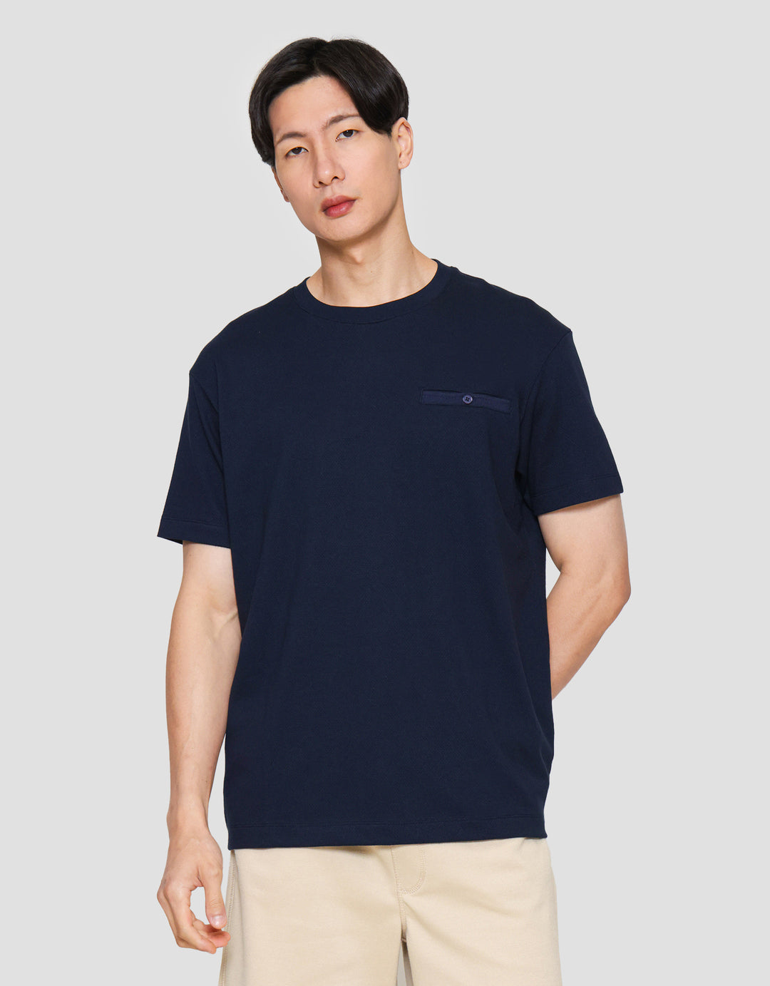 Cole Solid Popcorn Pocket Button Kaos Lengan Pendek Pria