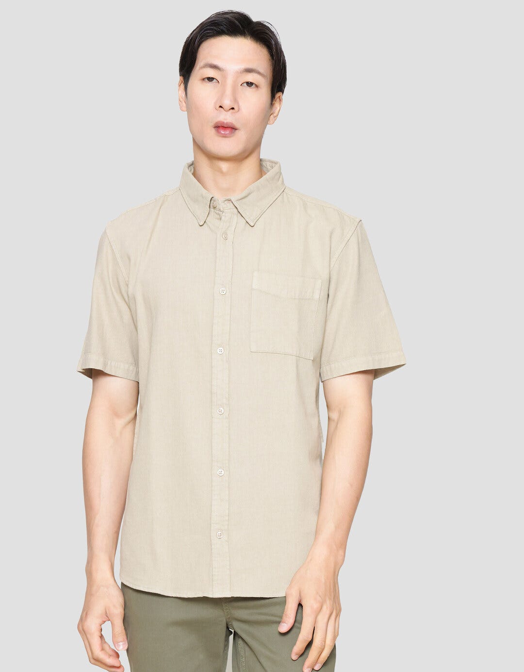 Cole Woven Solid Garment Dyed Twill Kemeja Lengan Pendek Pria