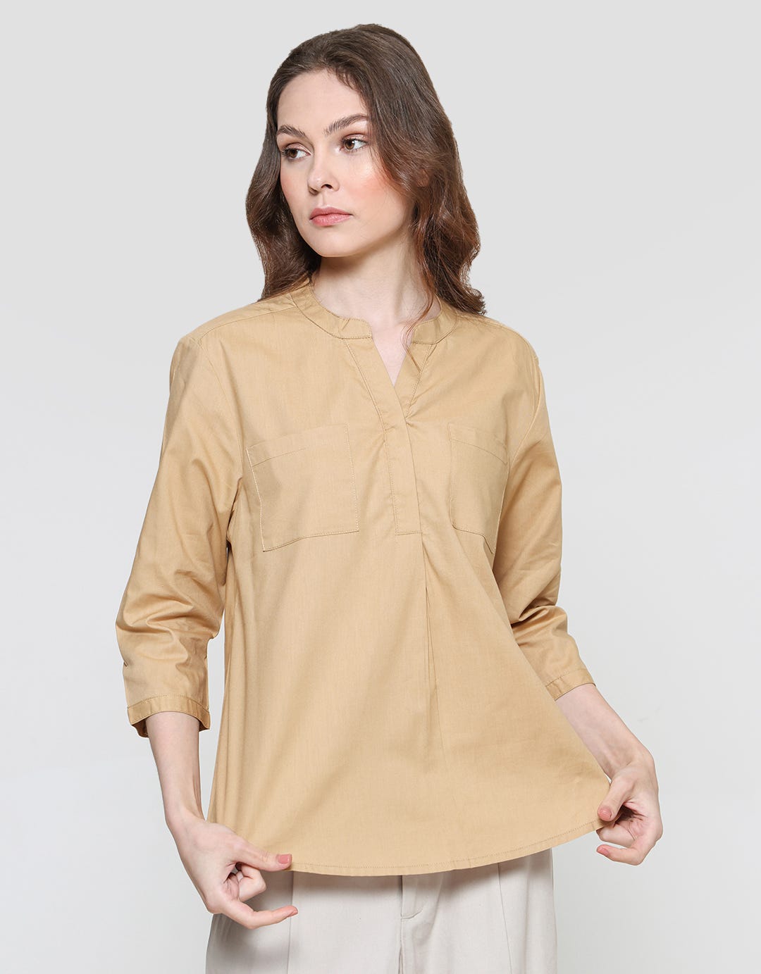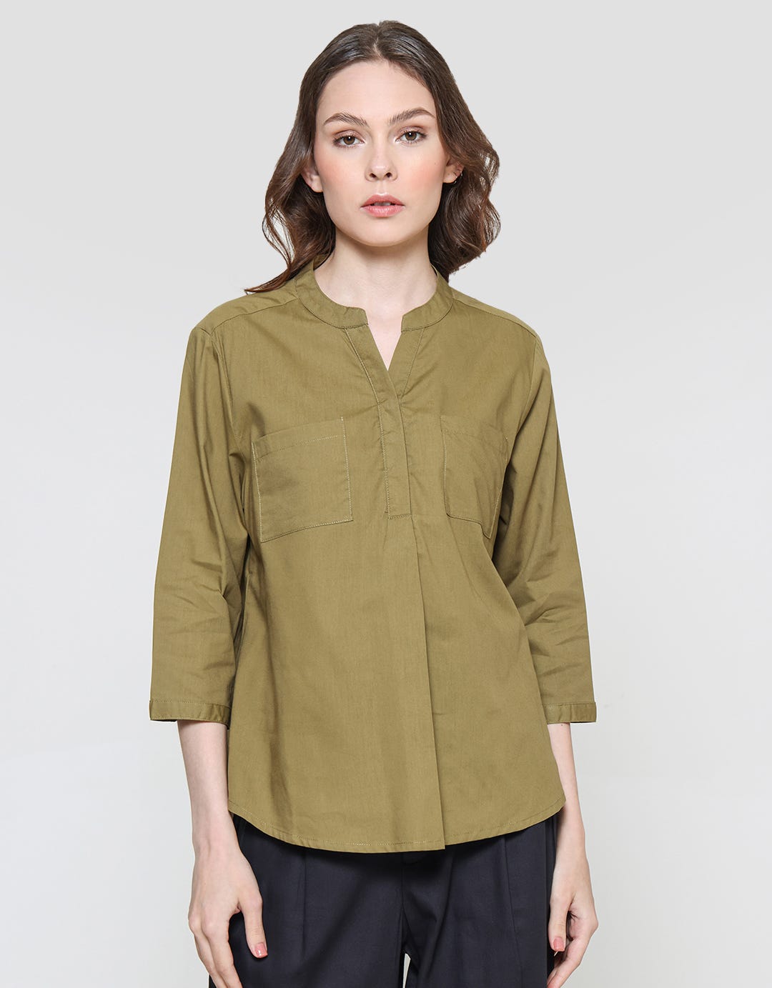 Connexion 2 Detail Pocket Kemeja Lengan Panjang Wanita