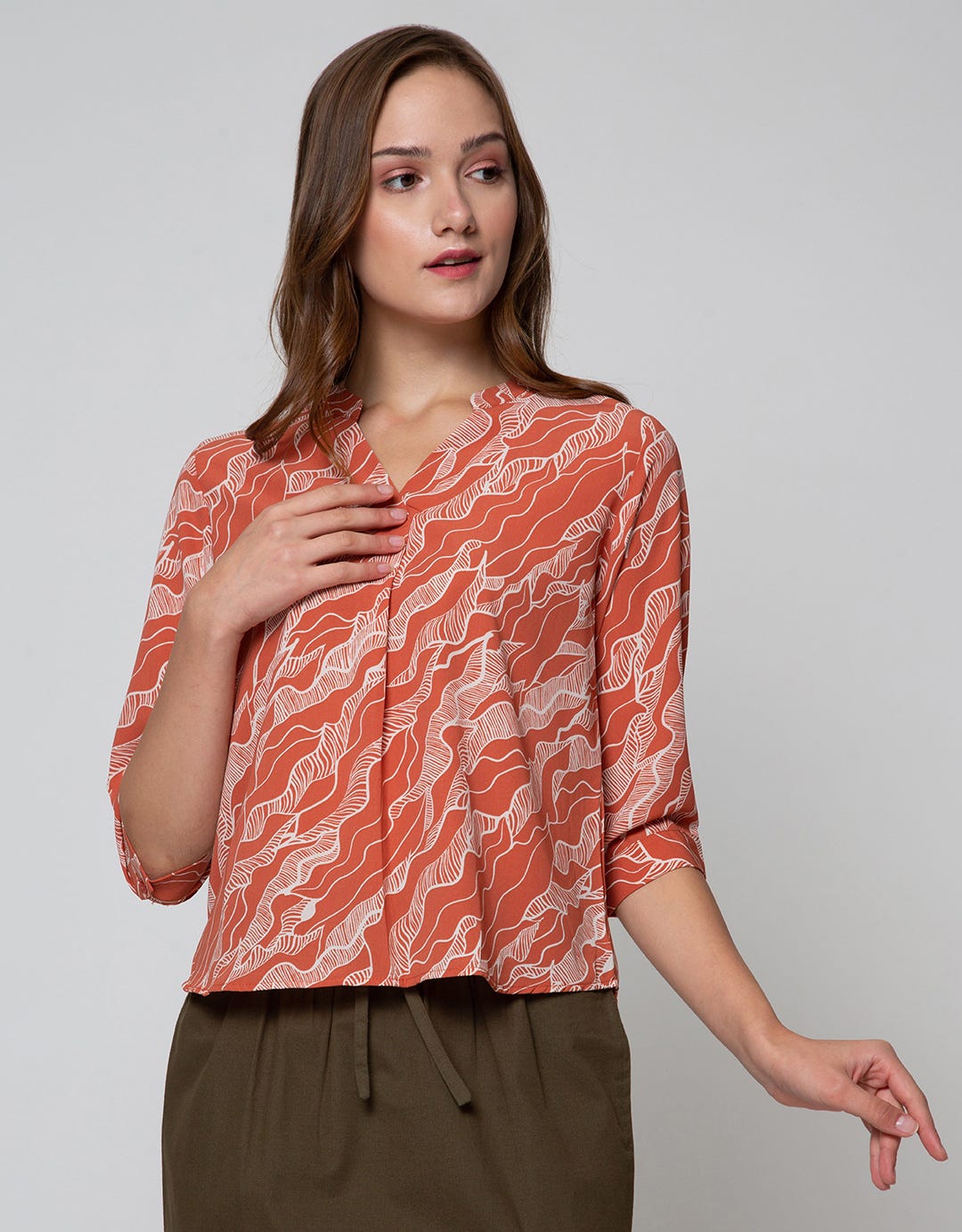 Connexion 3/4 Blouse Sleve Topography Print Skipper Hai Neck