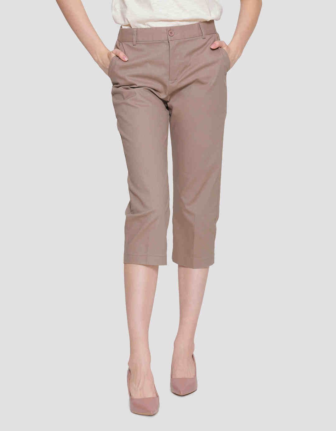 Connexion Crop Cotton Stretch Elastic Waist Celana Panjang Wanita