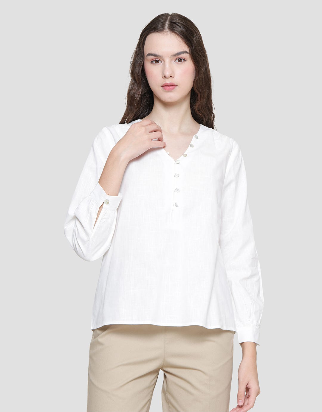 Connexion Cross Fire Shell Buttons Blouse Lengan Panjang Wanita