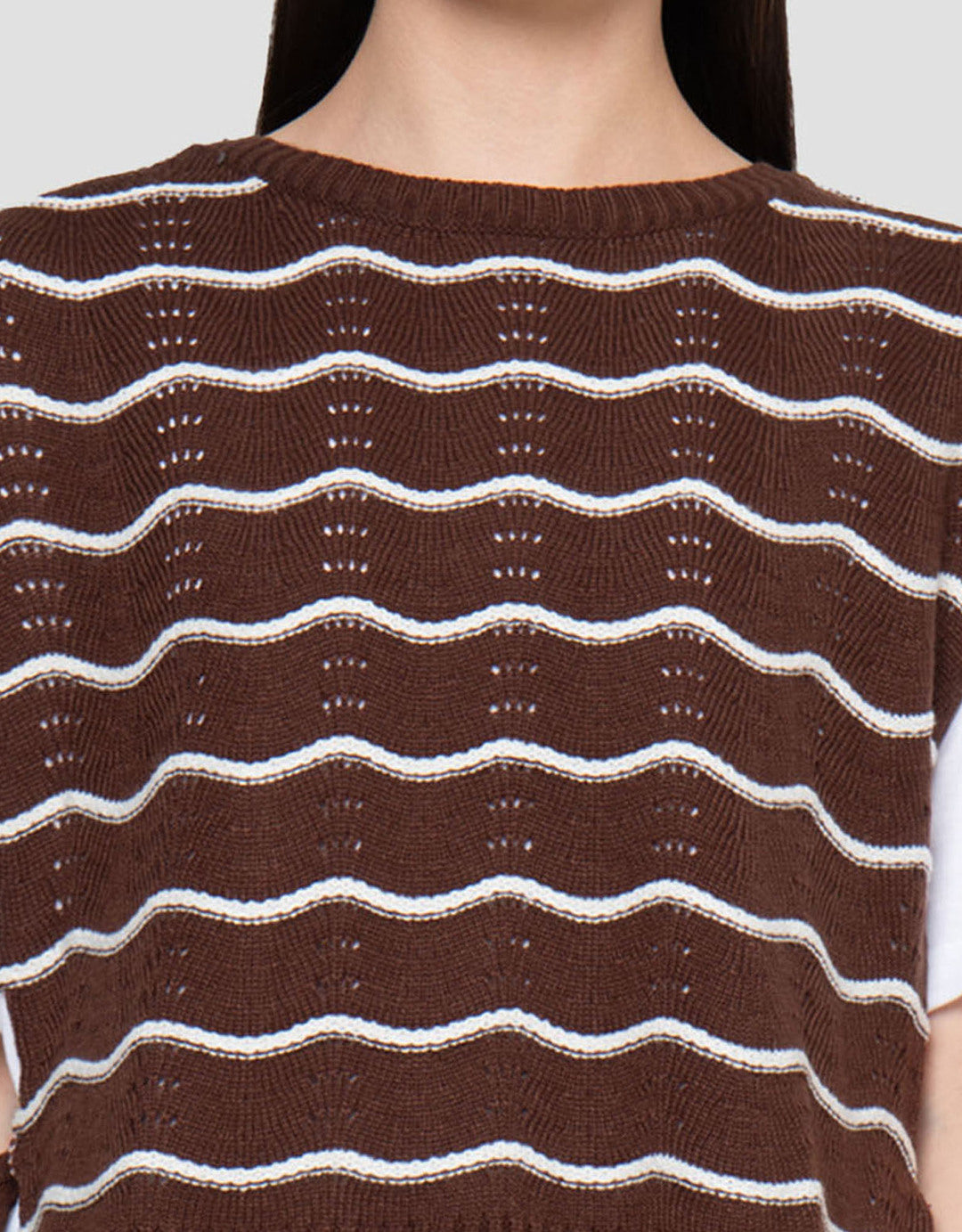 Connexion Dobel Rajut Vest Tali Kaos Wanita