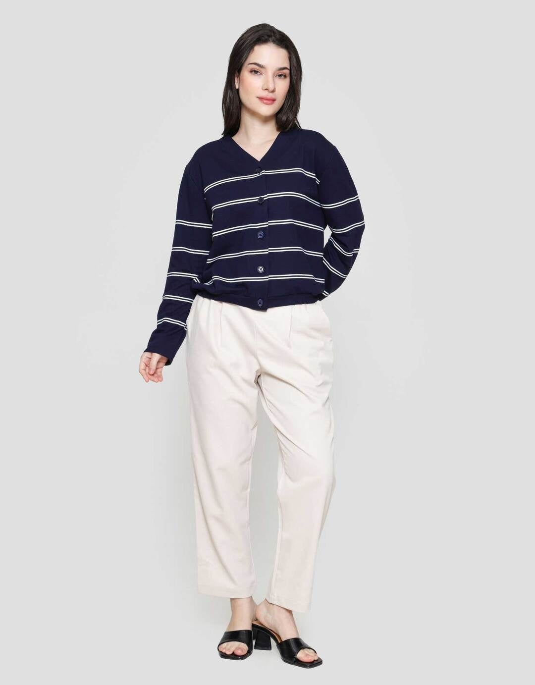 Connexion Garis V Neck Cardigan Wanita