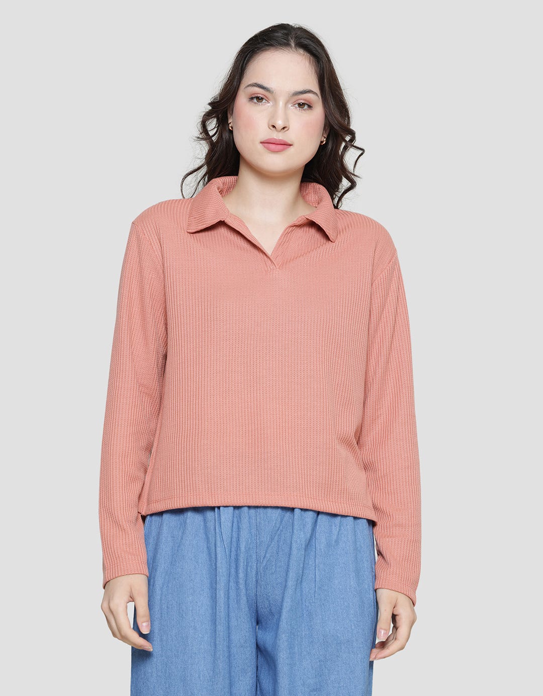 Connexion Kerah Waffle Crop Kaos Lengan Panjang Wanita