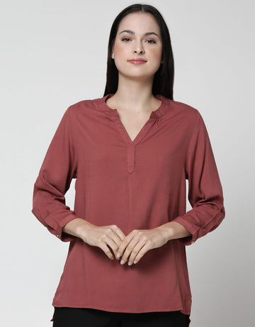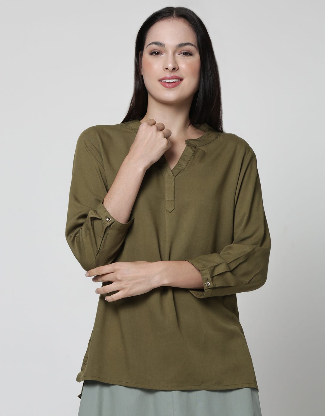 Connexion Long Sleeve Blouse 7/8 Sleve Rayon Twill No Button Hai Neck