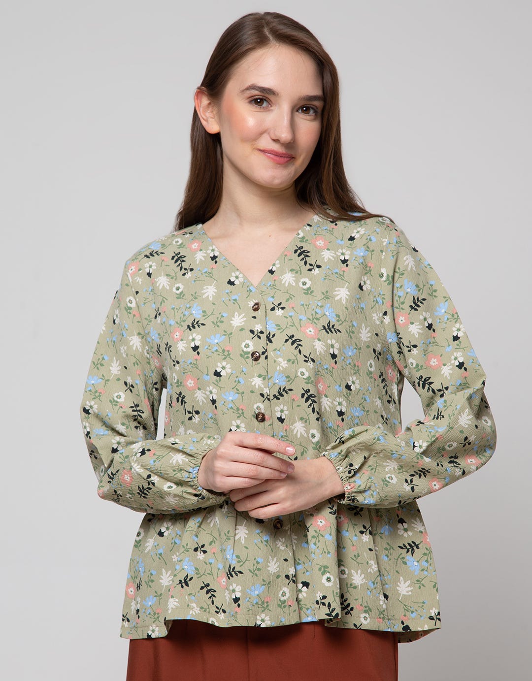 Connexion Long Sleeve Blouse Floral Print Crinkle