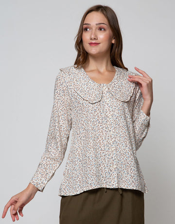 Connexion Long Sleeve Blouse Rayon Print Flower Sulur With Peterpan