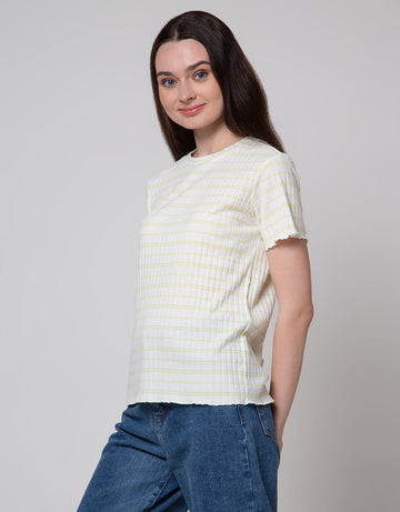 Connexion Rib Stripe Kaos Wanita