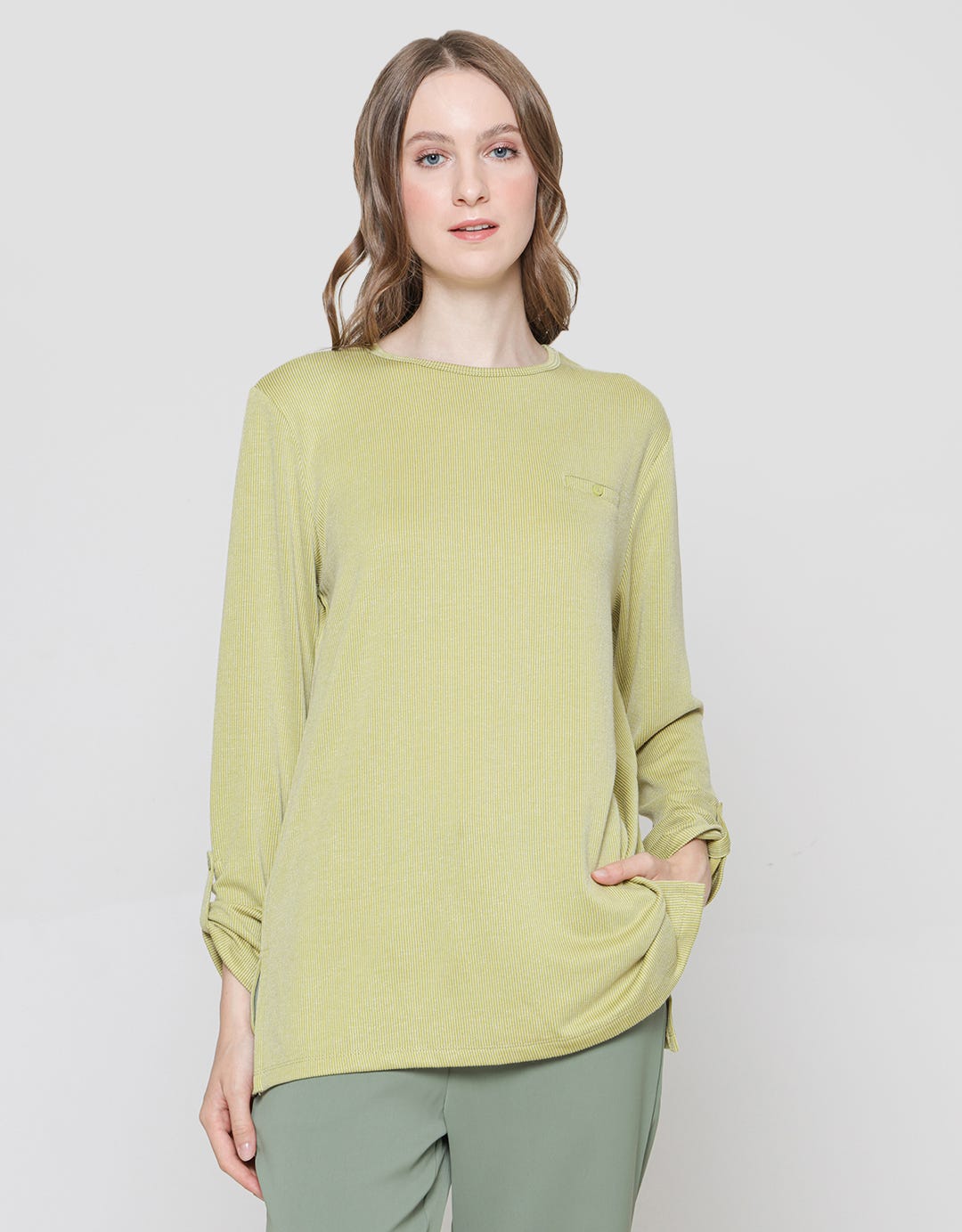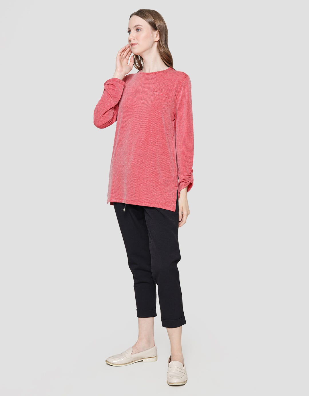 - Round neck, lengan panjang