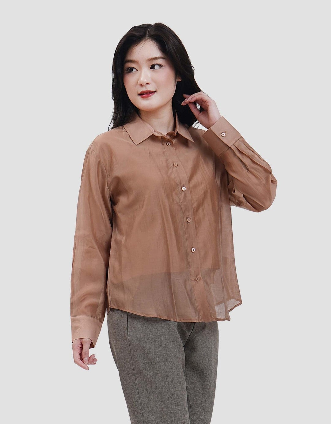 Hadir dengan desain yang anggun dan modern, kemeja wanita ini menjadi pilihan sempurna untuk menunjang penampilan yang rapi dan berkelas. Potongan yang mengikuti siluet tubuh secara natural memberikan tampilan feminin tanpa terlihat berlebihan. Detail kerah yang klasik serta jahitan rapi menambah kesan profesional.