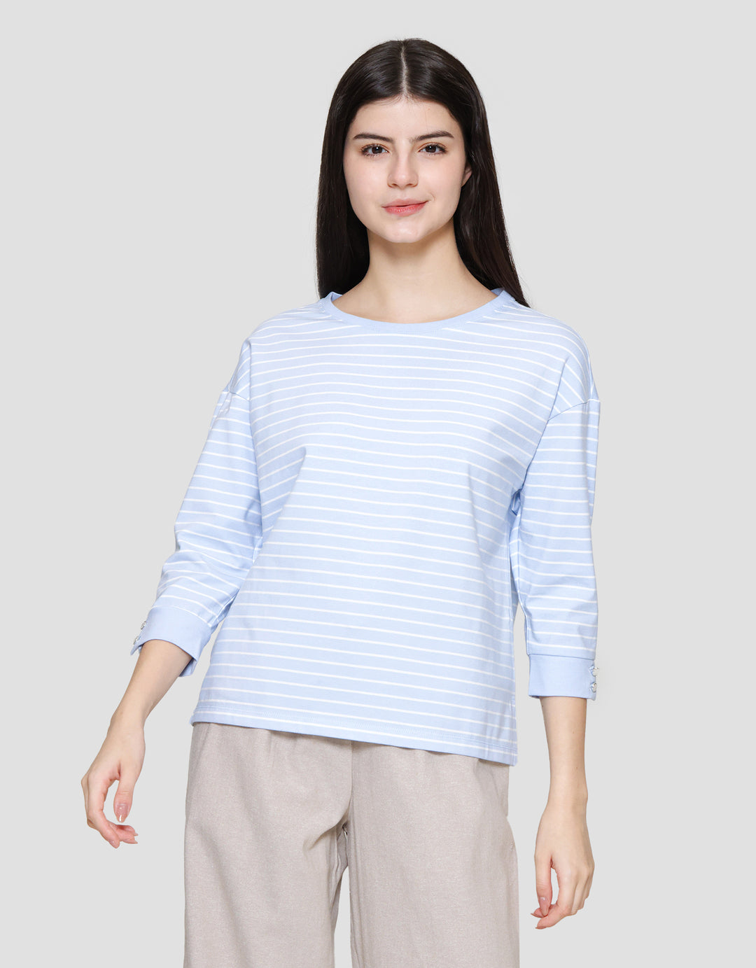 Connexion Stripe Cotton Spandex Kaos Wanita