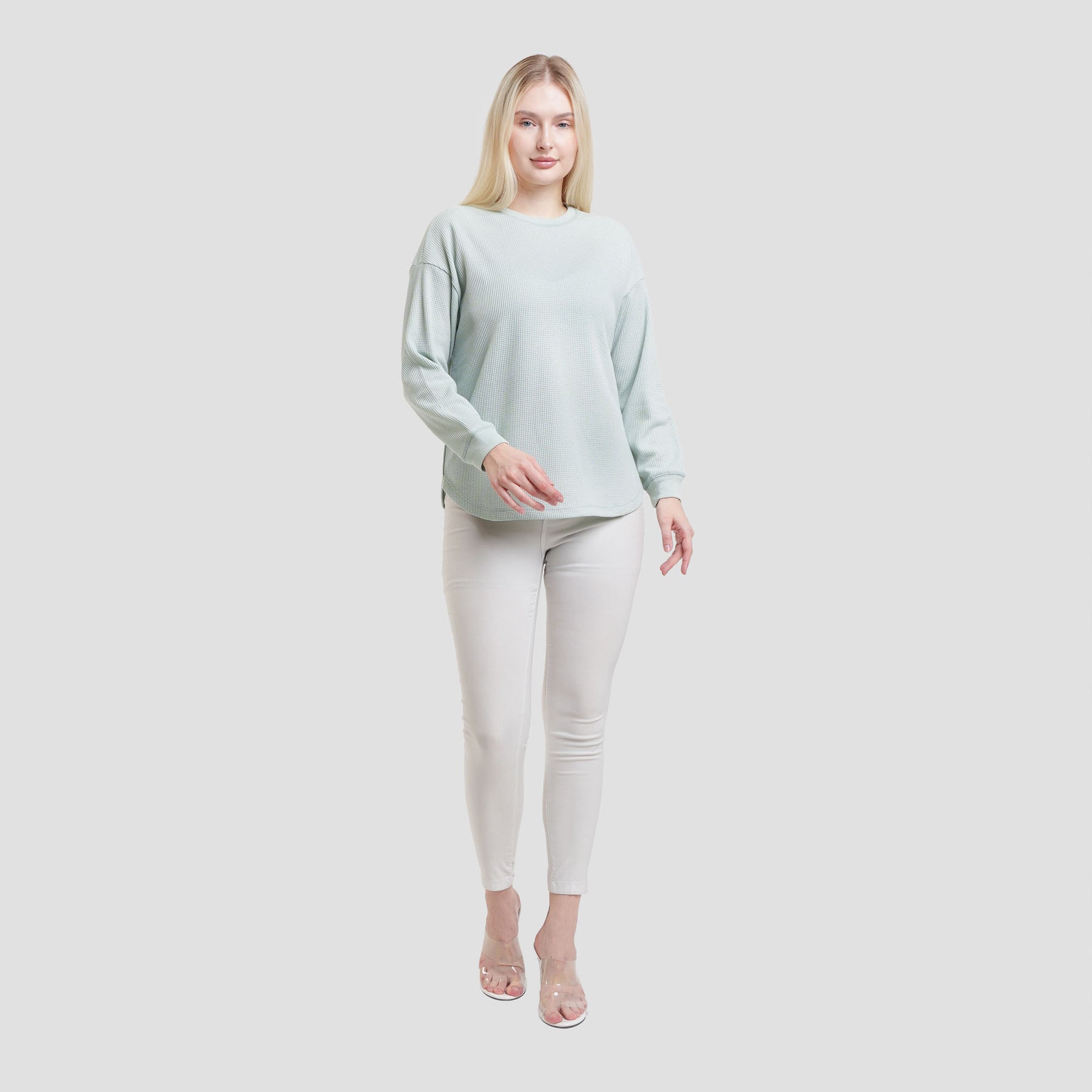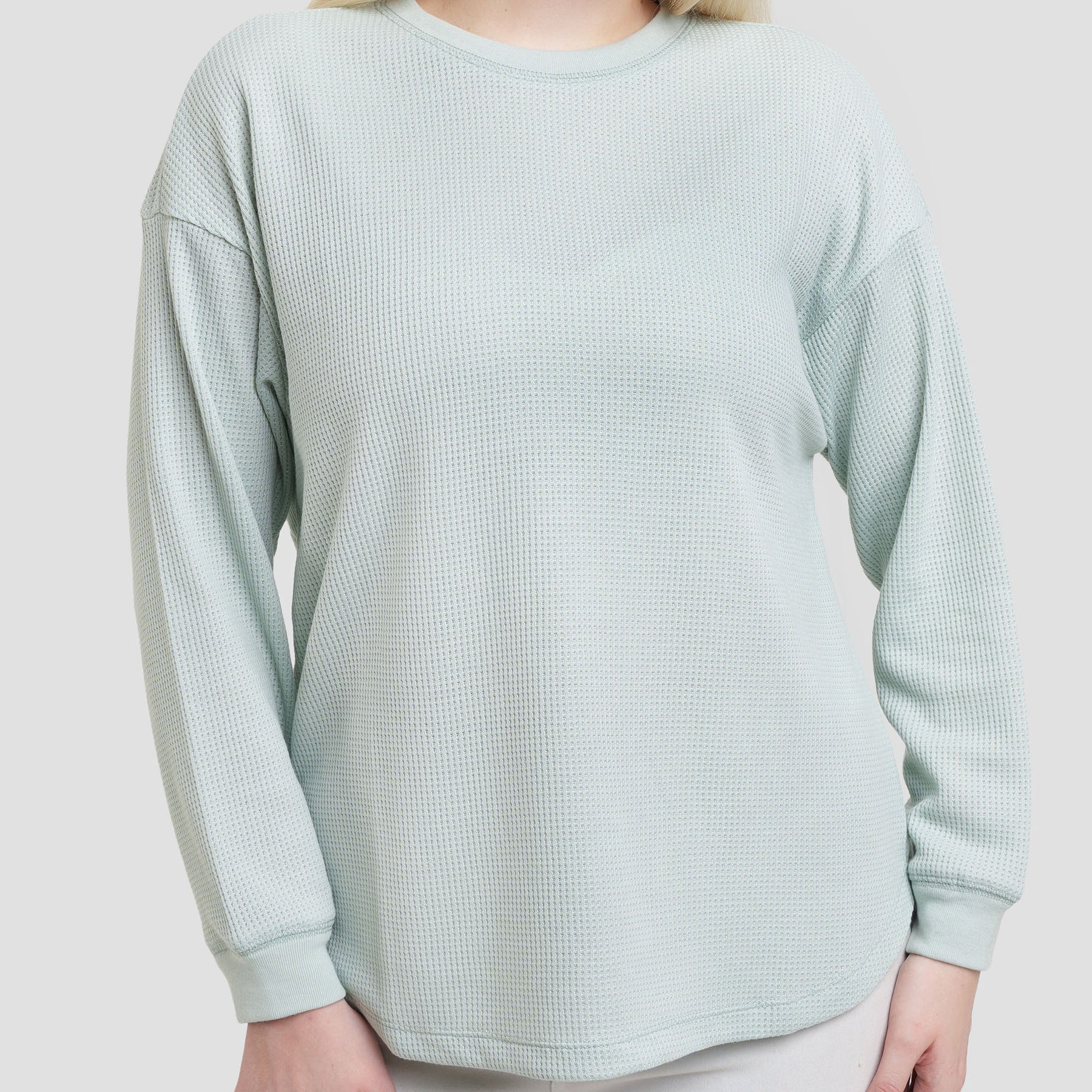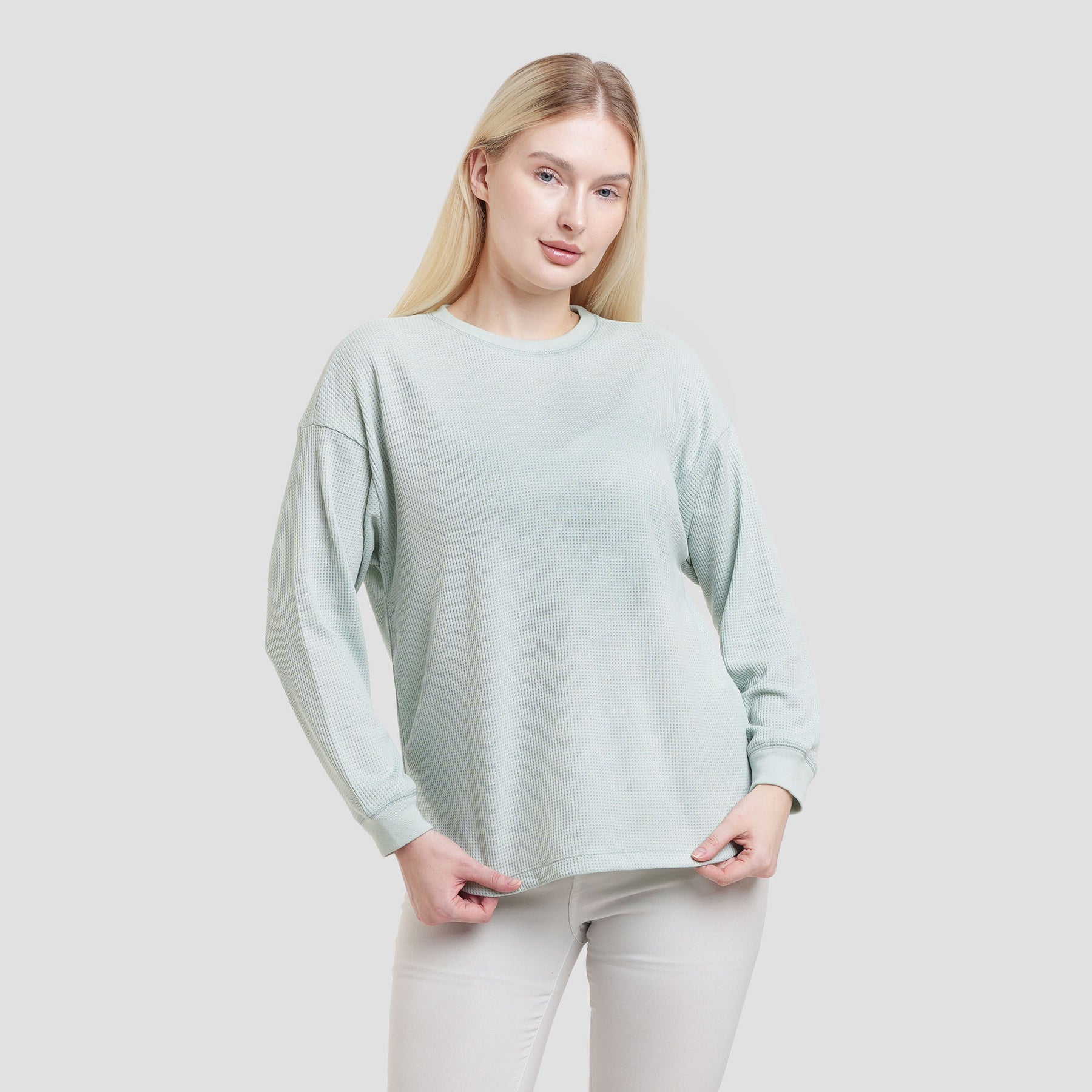 - Lengan panjang, kerah bundar