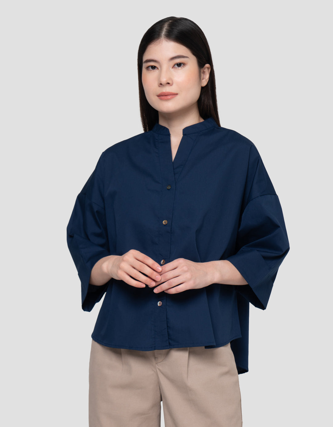 Connexion Wide Mandarin Collar Kemeja Wanita