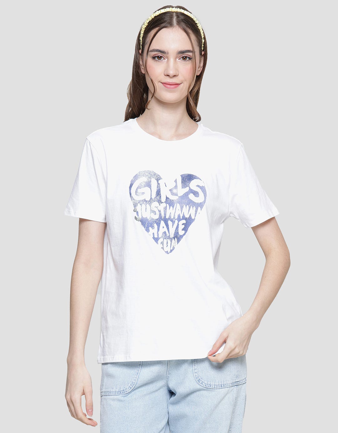 Kaos wanita dengan model yang casual dan simple serta detail print yang berkualitas, cocok untuk Anda gunakan pada moment keseharian menemani saat santai Anda. Kaos ini juga dapat dipadankan dengan bawahan apapun yang membuat Anda lebih nyaman dalam beraktifitas. Bahan yang ringan dan lembut, mampu memberikan kesan casual yang dapat Anda gunakan sepanjang hari.