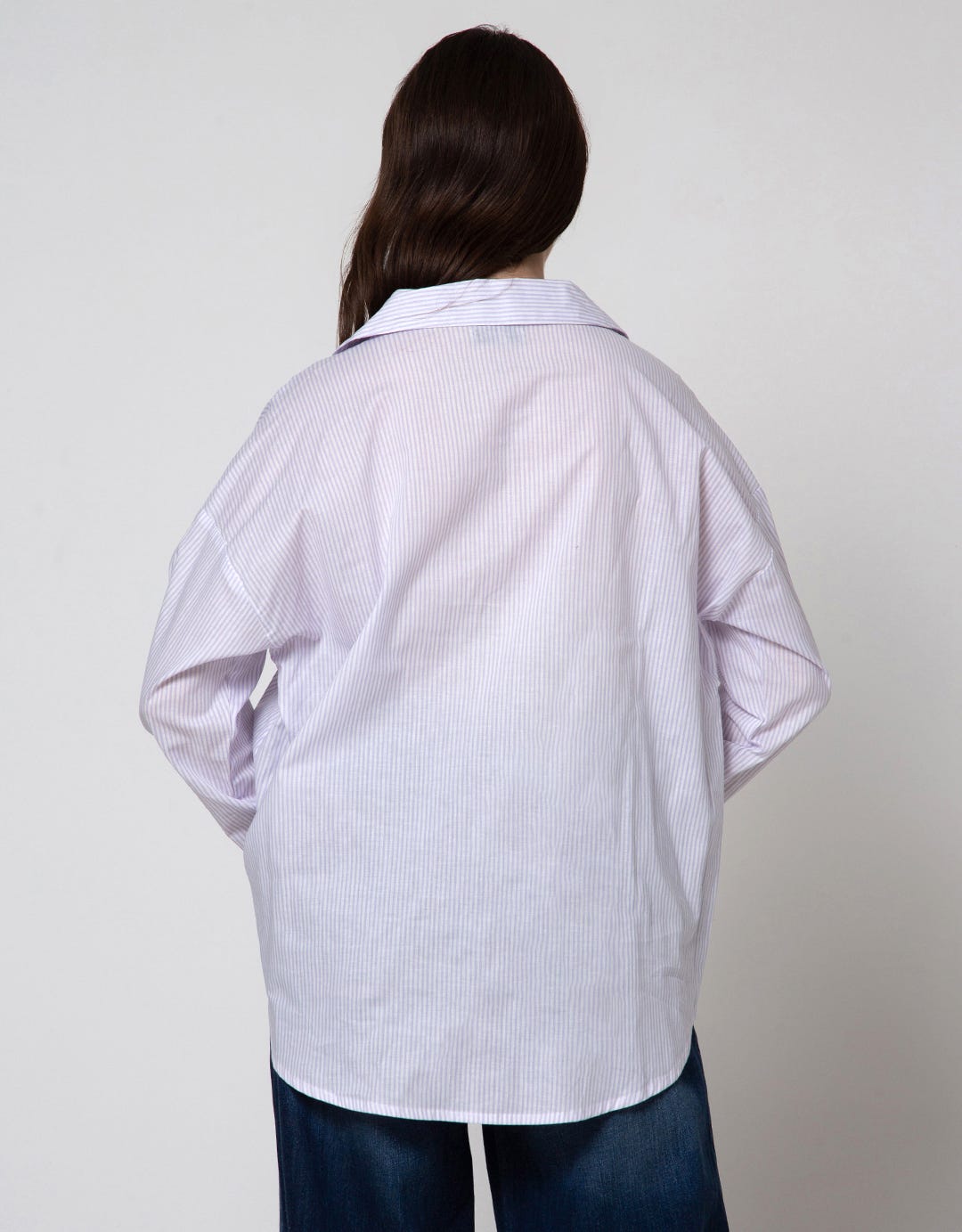 Details Long Sleeve Blouse With Printed Stripe On White