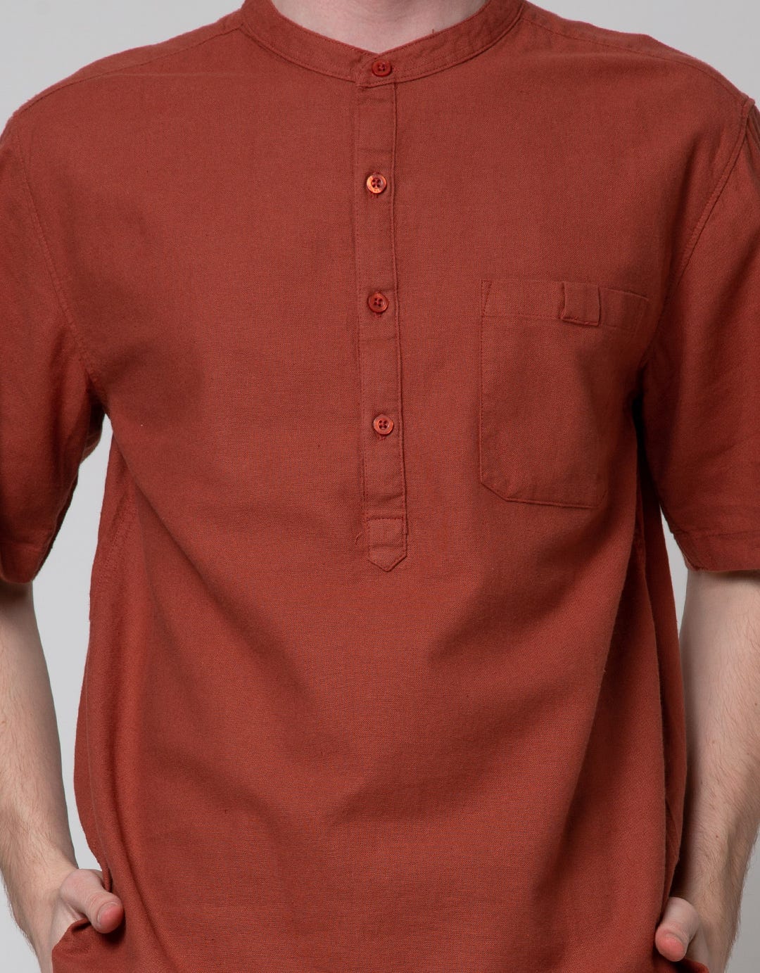 Details Short Sleeve Shirt Solid Linen Half Plackat