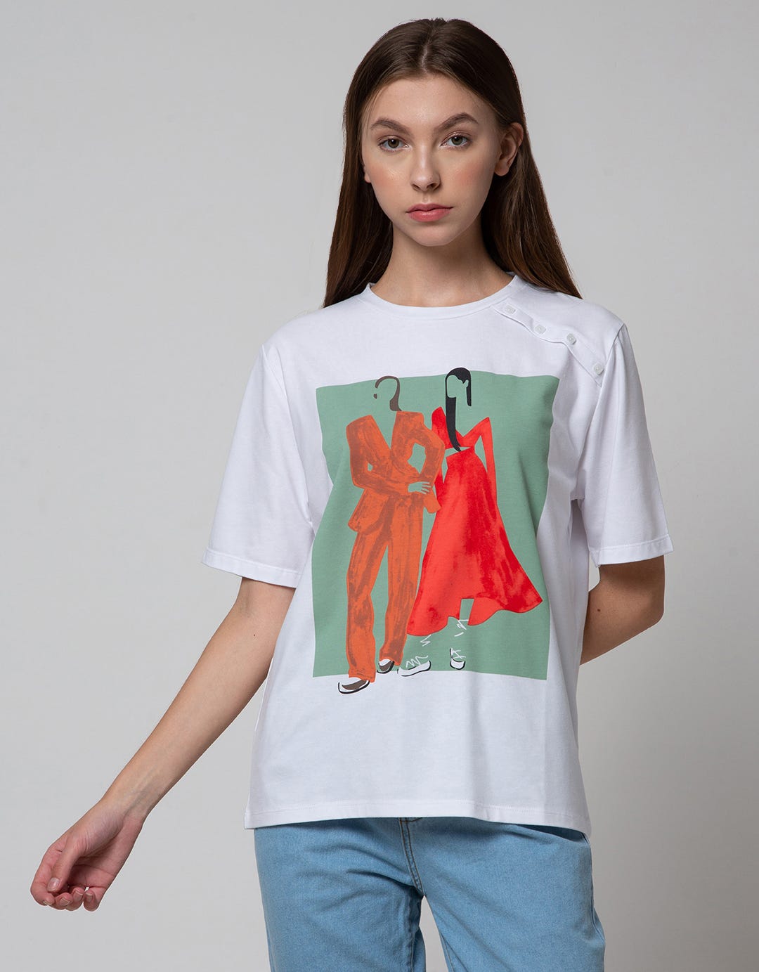 Details Short Sleeve T-Shirt Printed W Fake Buttons