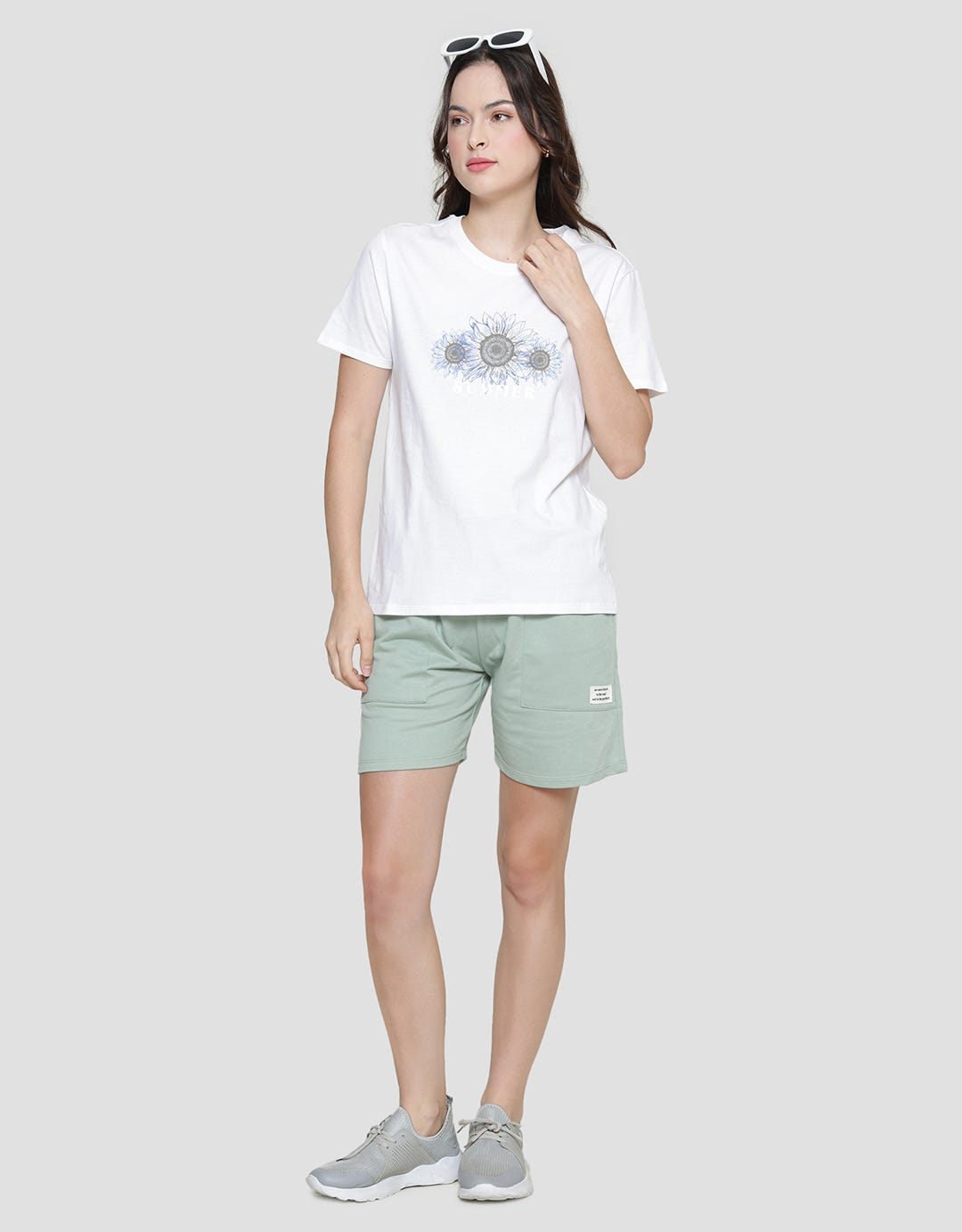Details Summer Foil Print Kaos Lengan Pendek Wanita