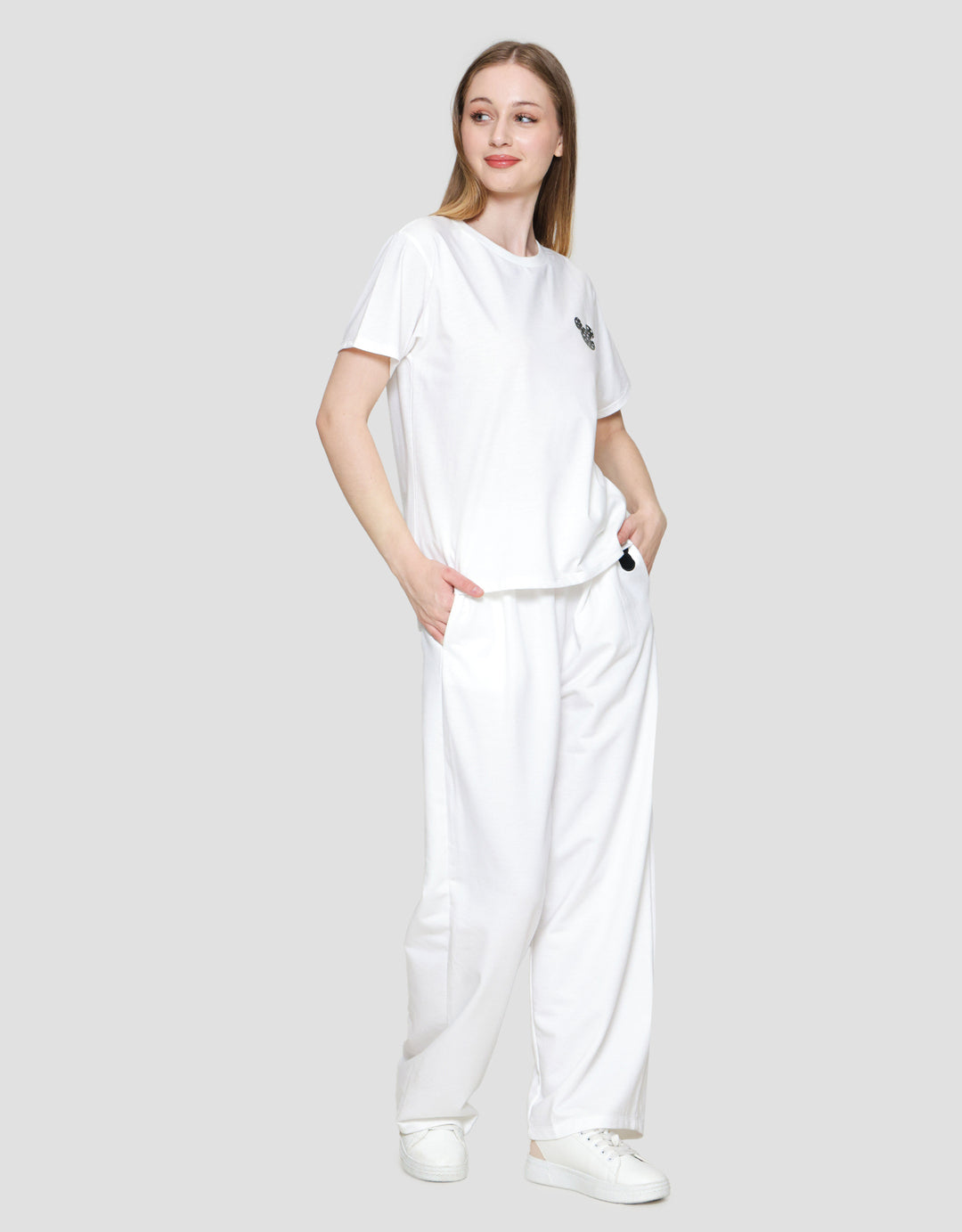 Disney Bordir Mickey Kaos Lengan Pendek Wanita
