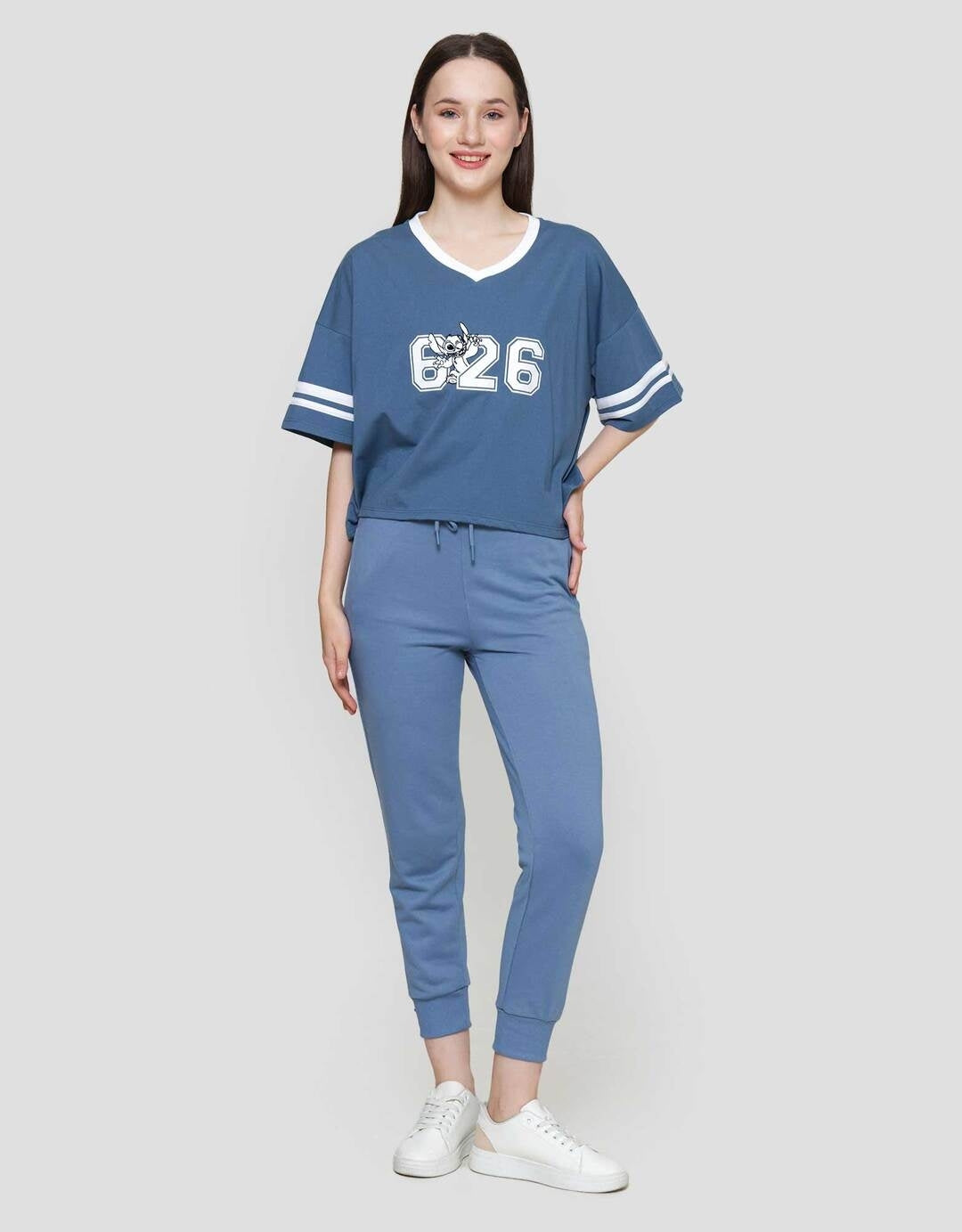 Disney Boxy Print Stitch Kaos Lengan Pendek Wanita