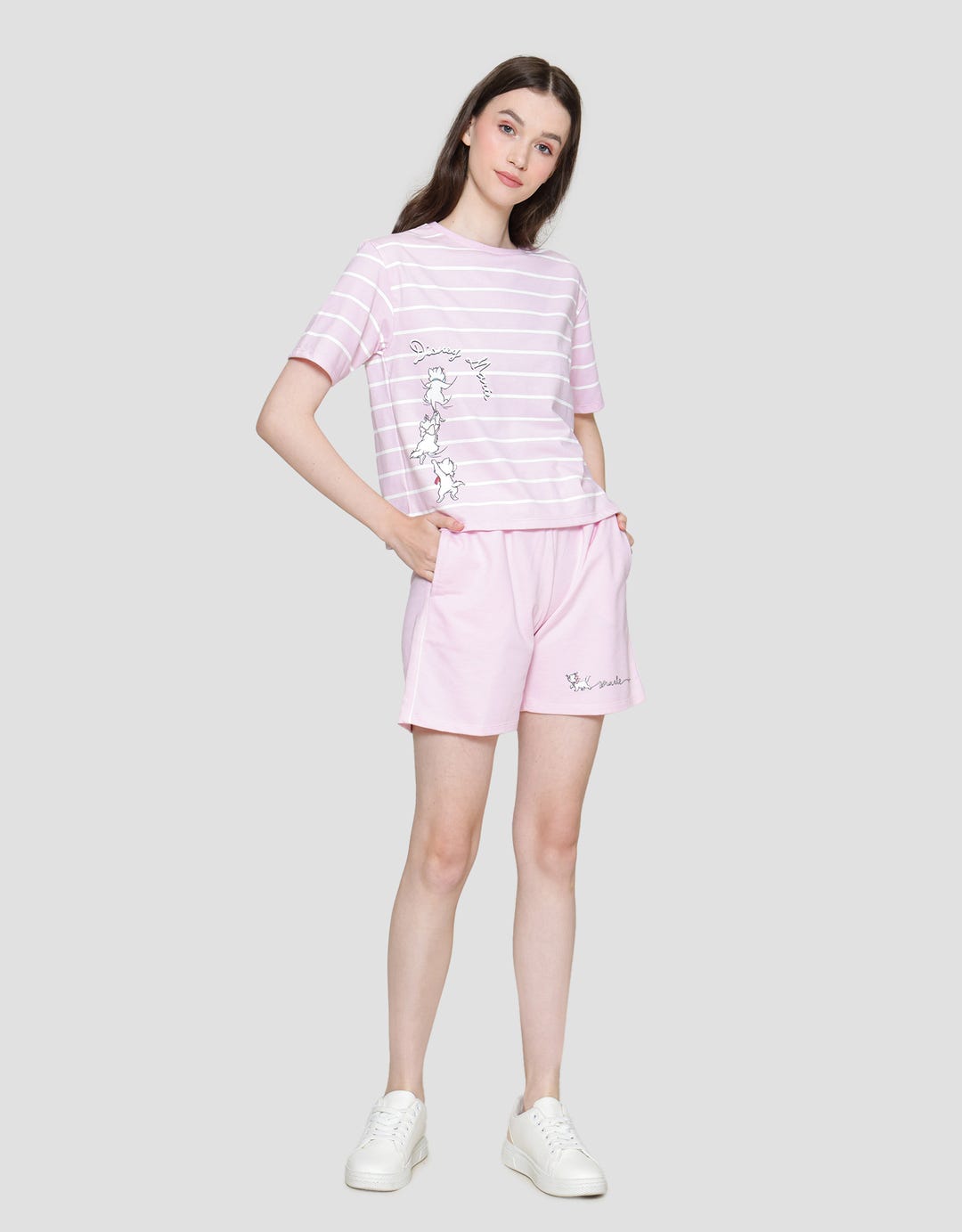 Disney Boxy Stripe Print Marie The Cat Kaos Lengan Pendek Wanita
