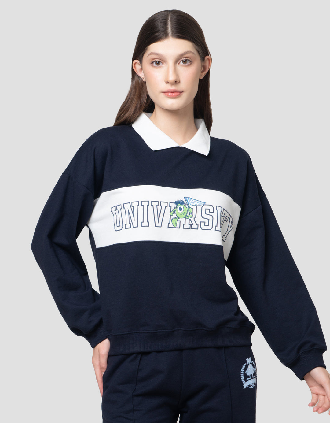 Disney Collar Reg Print Monster Sweater Wanita